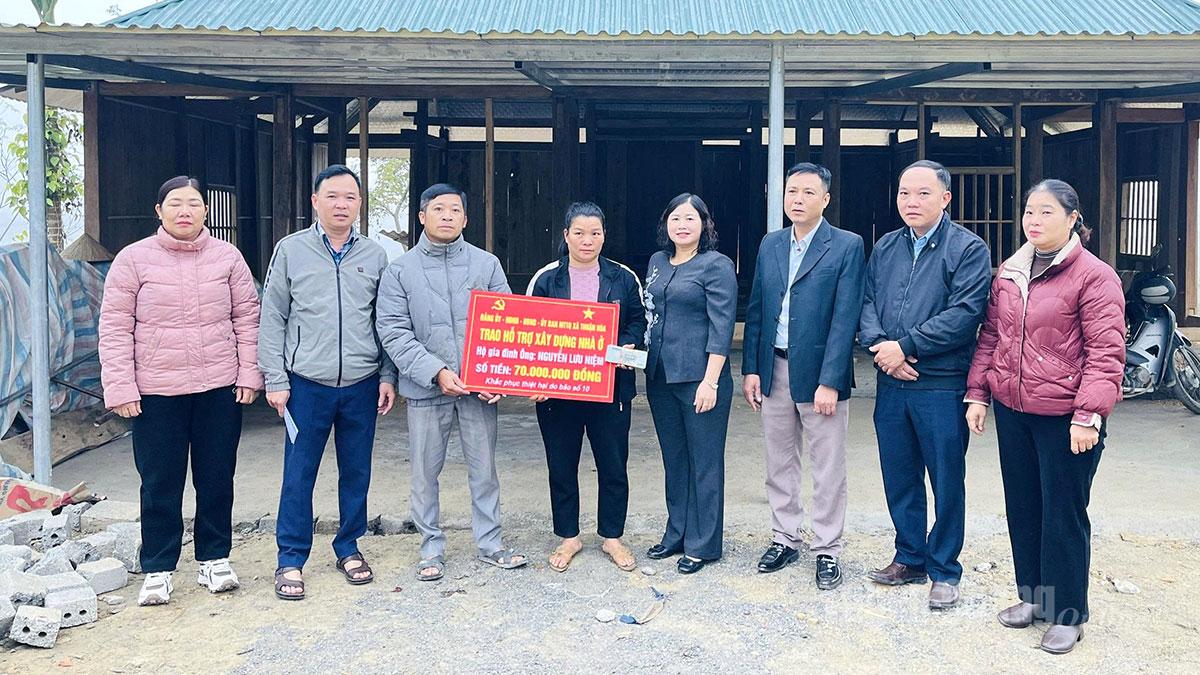 Lãnh đạo xã Thuận Hòa trao 70 triệu đồng hỗ trợ xây nhà mới cho gia đình ông Nguyễn Lưu Niệm, thôn Mịch A.