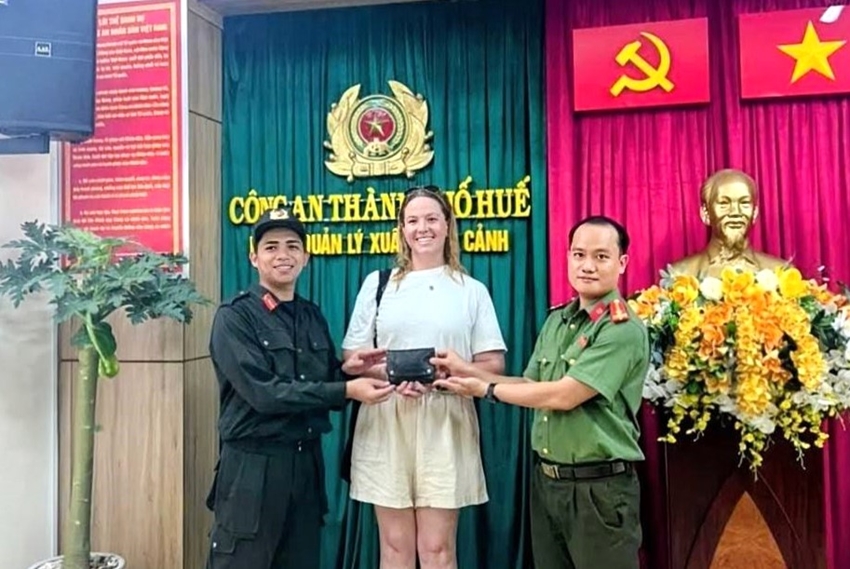 Với tinh thần, trách nhiệm cao, Phòng Quản lý xuất nhập cảnh đã nhanh chóng xác minh người đánh rơi ví là du khách Georgia Burnett (đang lưu trú tại Khách sạn Park View, phường Thuận Hóa) và tiến hành các thủ tục để trao trả.