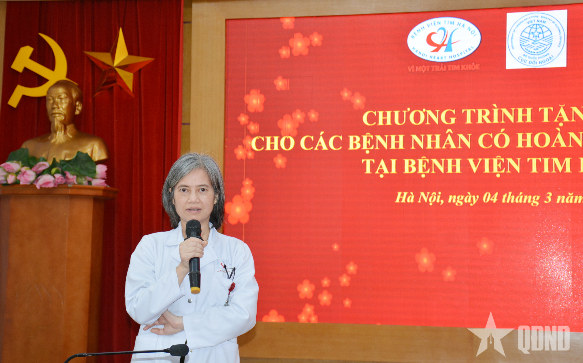 Thay mặt lãnh đạo và tập thể cán bộ, nhân viên Bệnh viện Tim Hà Nội, Tiến sĩ Vũ Quỳnh Nga, Phó giám đốc Bệnh viện bày tỏ sự xúc động và trân trọng cảm ơn tình cảm, những phần quà động viên rất có ý nghĩa mà cán bộ, hội viên Hội phụ nữ cơ sở Cục Đối ngoại dành cho các bệnh nhân có hoàn cảnh khó khăn cũng như dành cho Bệnh viện Tim Hà Nội.