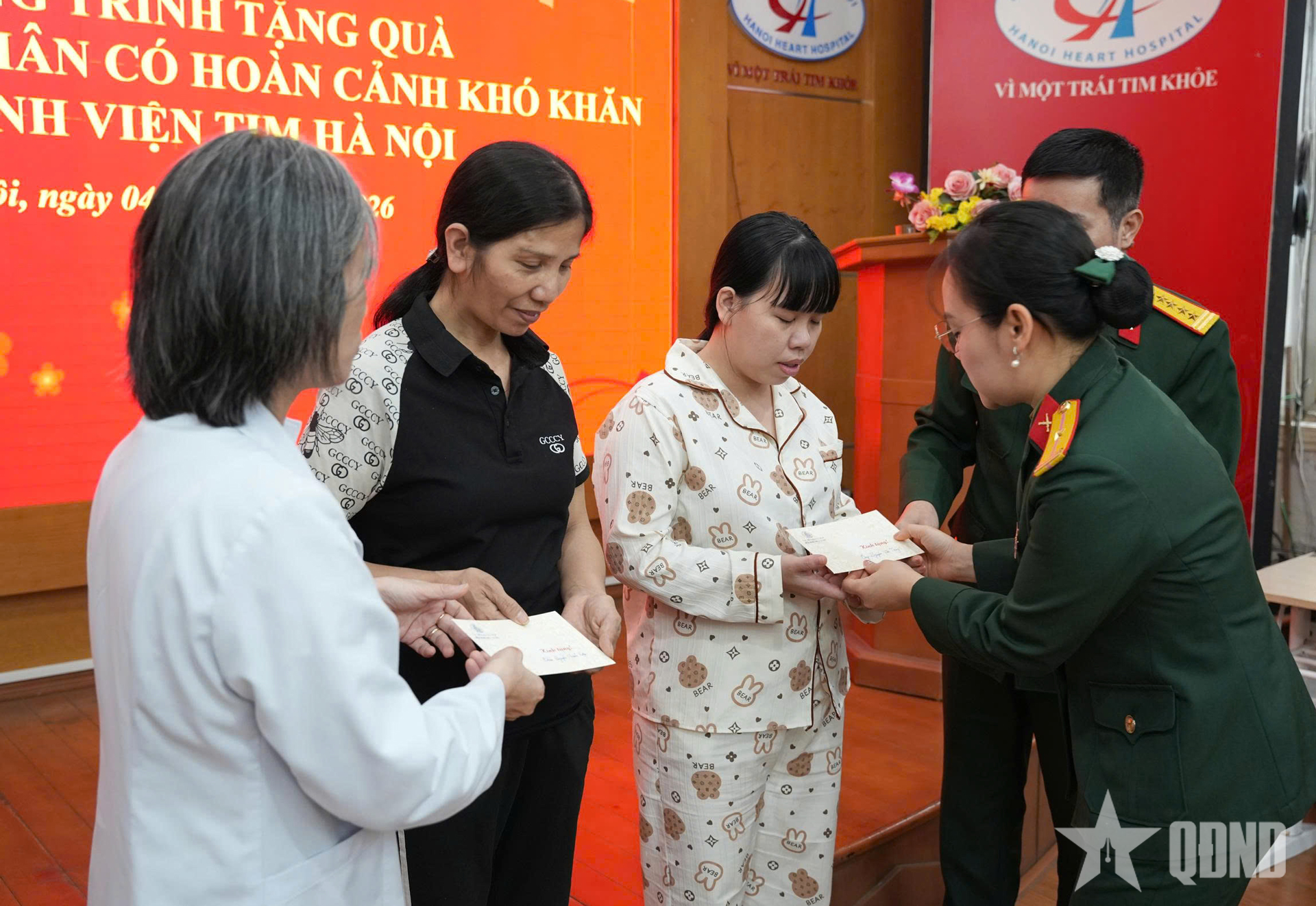 Đại biểu Cục Đối ngoại, Ban chấp hành Hội phụ nữ cơ sở và lãnh đạo, nhân viên Bệnh viện Tim Hà Nội cùng các bệnh nhân.