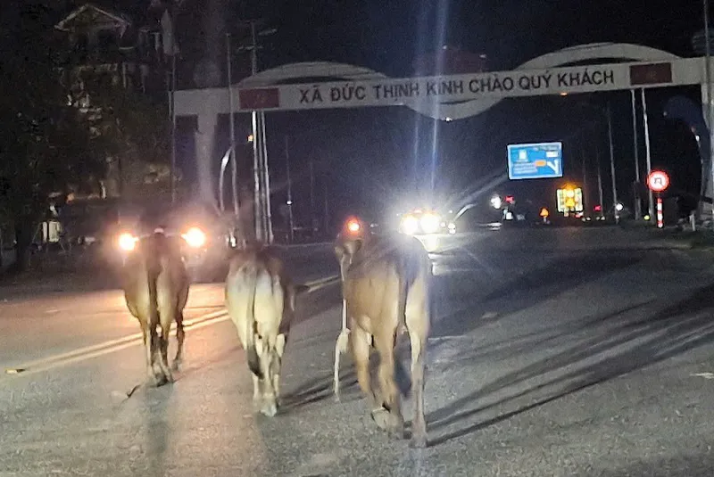 “Từ khoảng 19 giờ - 20 giờ, lưu thông trên Quốc lộ 8A đoạn qua nút giao cao tốc thường bắt gặp đàn trâu, bò nhởn nhơ trên đường rất nguy hiểm. Mỗi lần như vậy, tôi phải bóp còi và lái xe đi rất chậm, tránh tông vào đàn bò cũng như các phương tiện tham gia giao thông khác” - lái xe Nguyễn Tuấn Anh ở xã Đức Thọ cho biết.