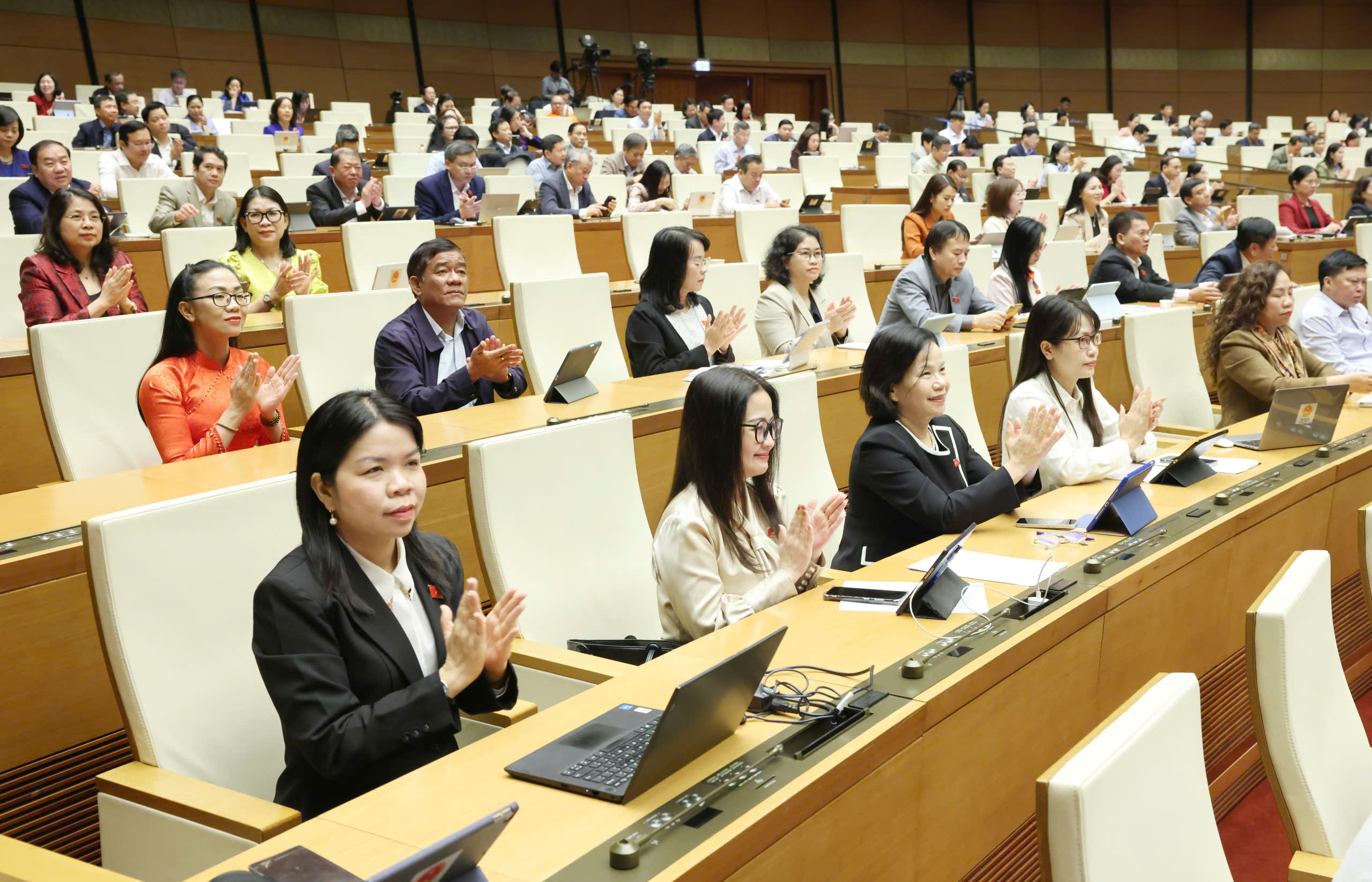 Đại biểu Quốc hội biểu quyết thông qua các dự luật sáng 10-12. Ảnh: QUANG PHÚC