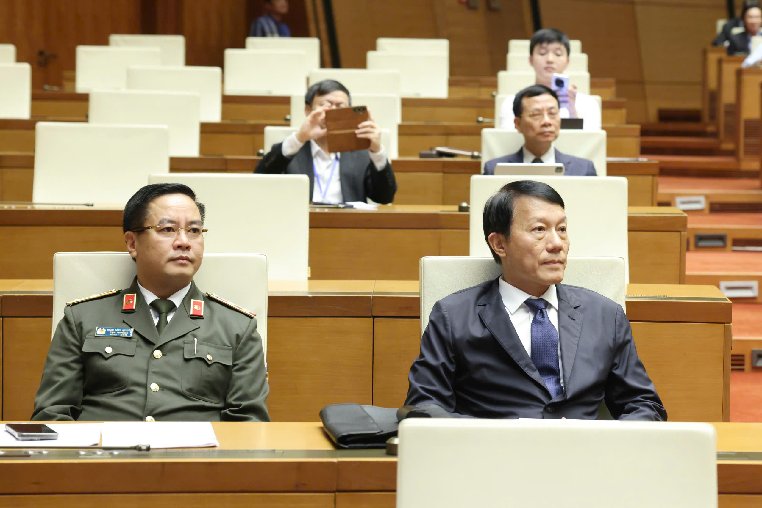 Bộ trưởng Bộ Công an Lương Tam Quang (bên phải) tại phiên họp Quốc hội, sáng 10-12. Ảnh: QUANG PHÚC