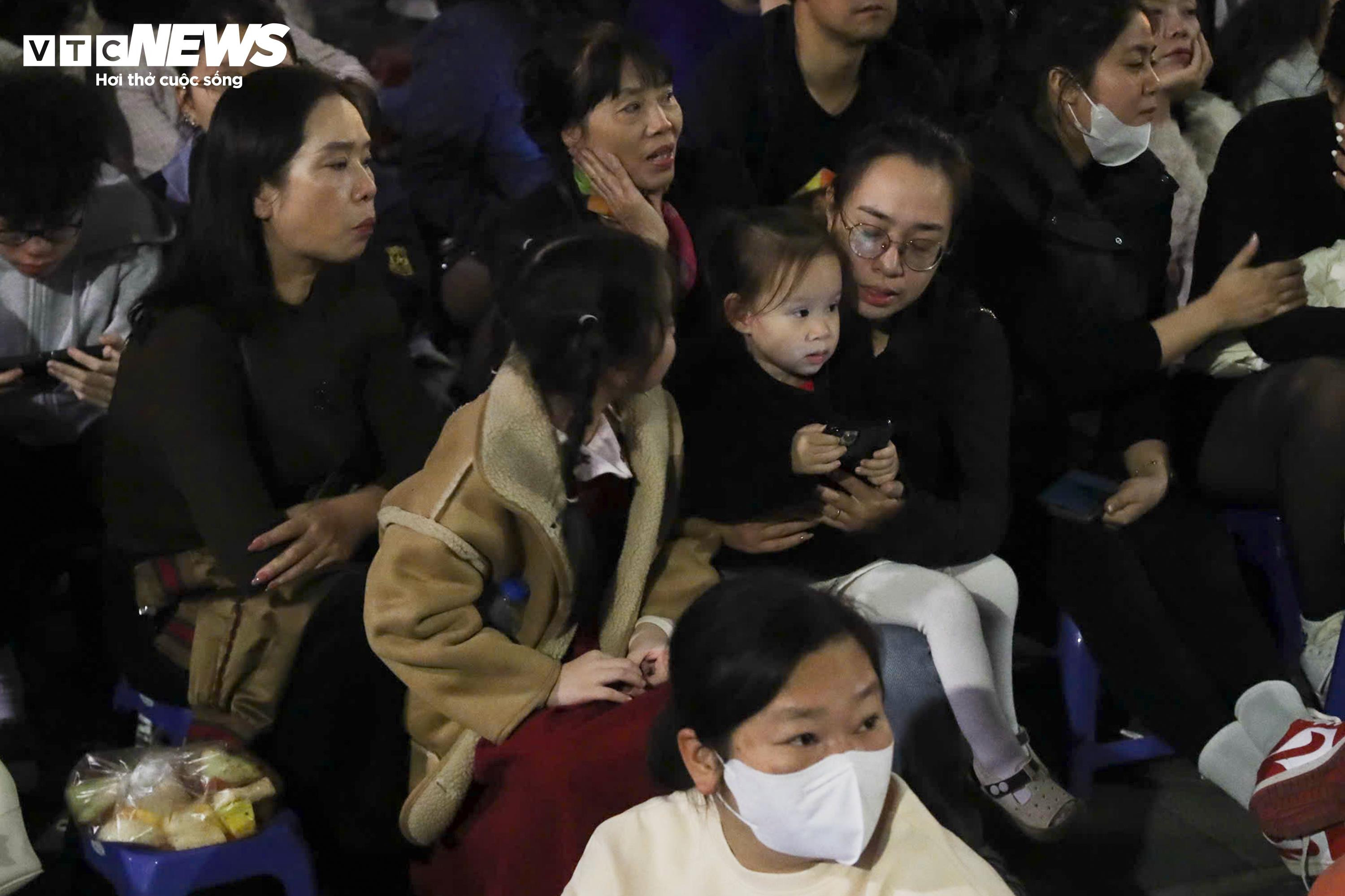 Do nhiệt độ ban đêm xuống thấp, các bậc phụ huynh chuẩn bị kỹ áo ấm cho con. Tuy nhiên, việc phải đứng chờ trong thời gian dài giữa đám đông khiến không ít em nhỏ tỏ ra mệt mỏi, quấy khóc.