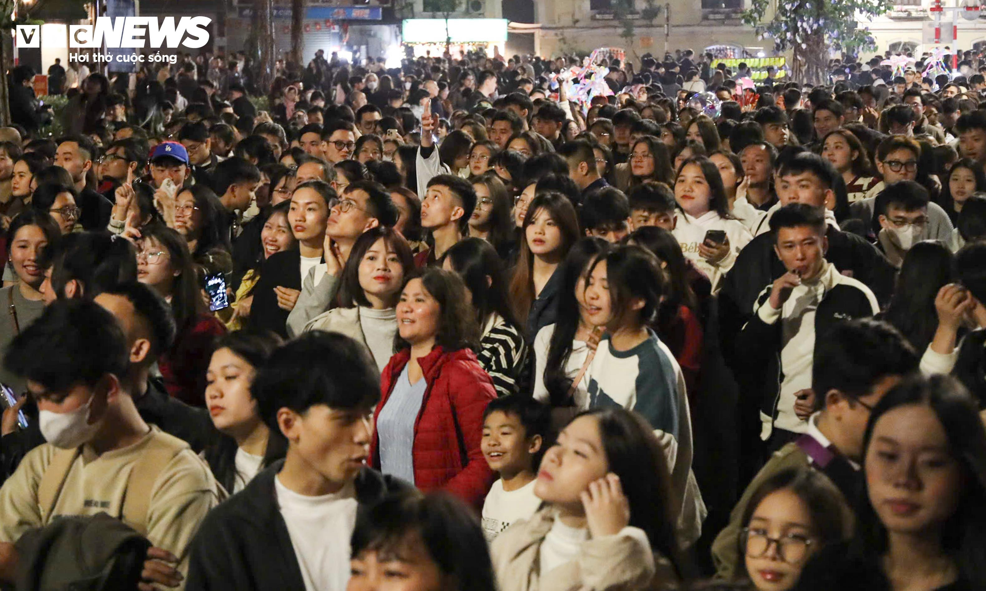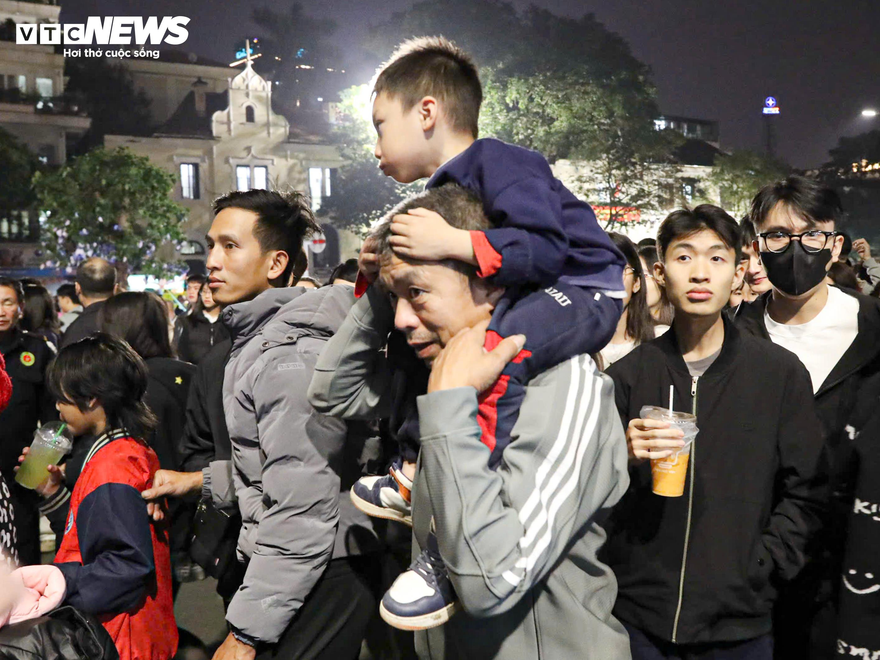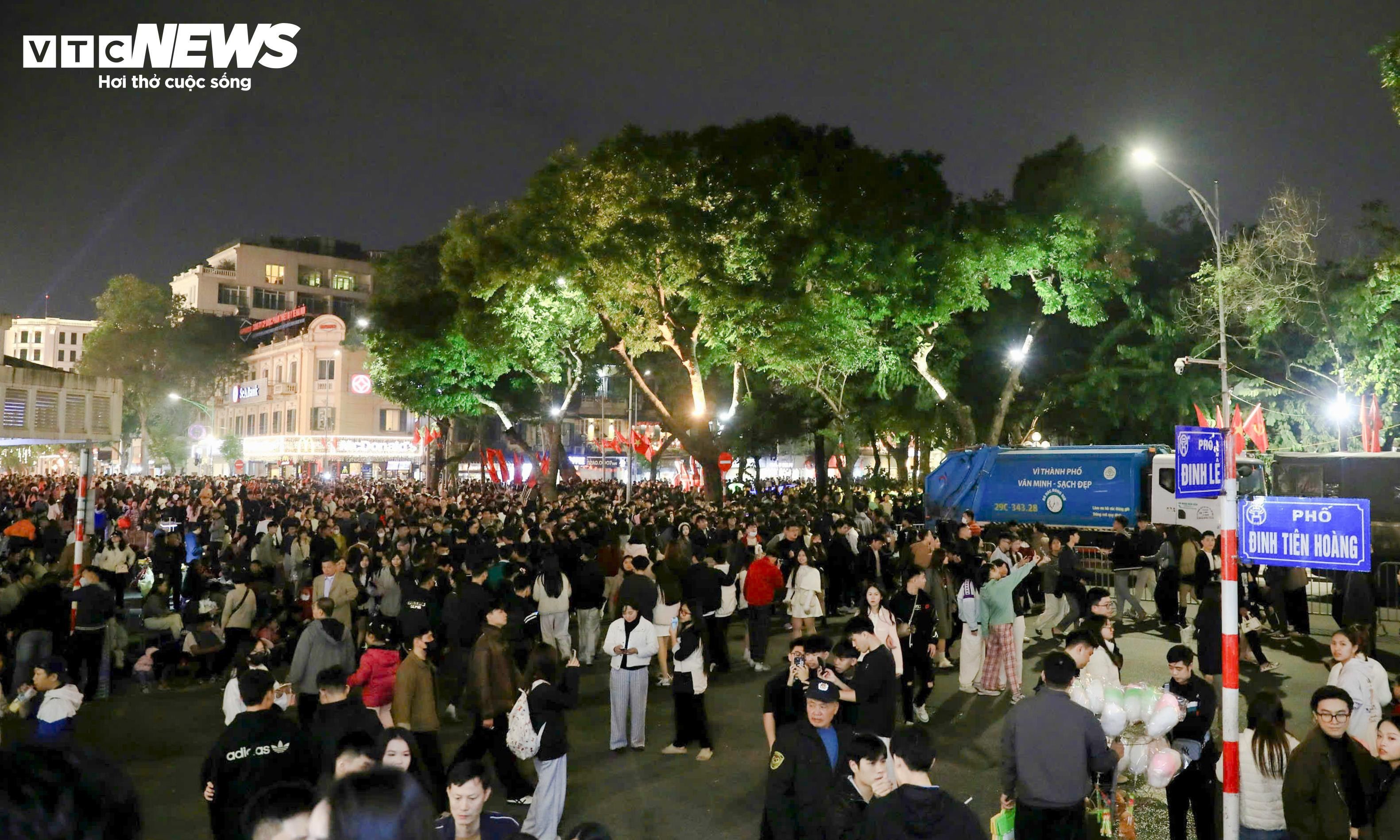 Đến khoảng 20h15, hàng chục nghìn người đã tập trung tại Quảng trường Đông Kinh Nghĩa Thục và không gian phố đi bộ hồ Hoàn Kiếm.
