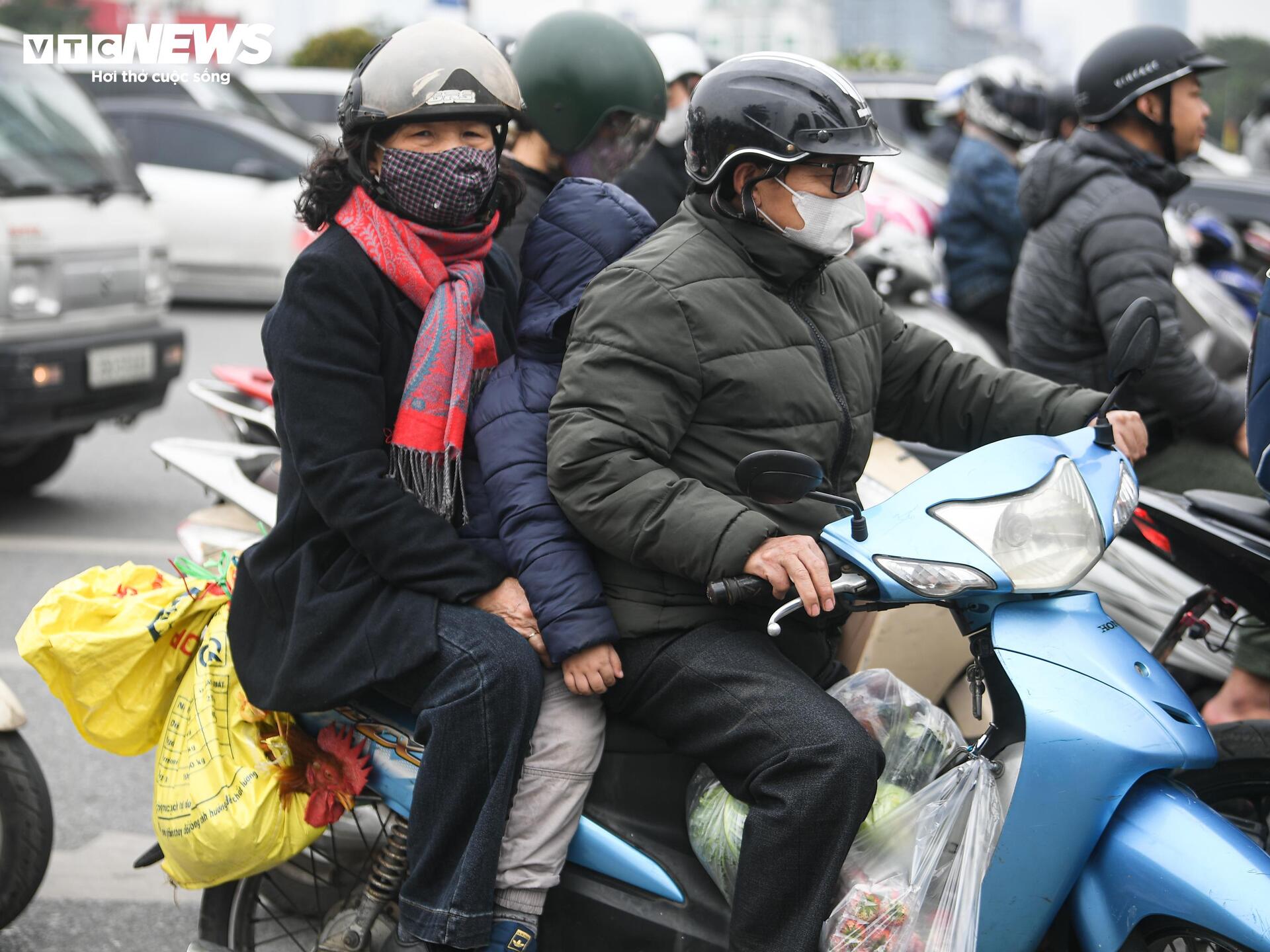 Chị Thanh Mai (42 tuổi) cùng chồng mang theo vali quần áo, quà Tết để về Ninh Bình. “Kết thúc buổi sáng là chúng tôi di chuyển luôn để kịp về nhà trong tối nay. Đường đông hơn mọi ngày nên đi chậm, nhưng ai cũng muốn về sớm để chuẩn bị Tết”, chị Mai chia sẻ.