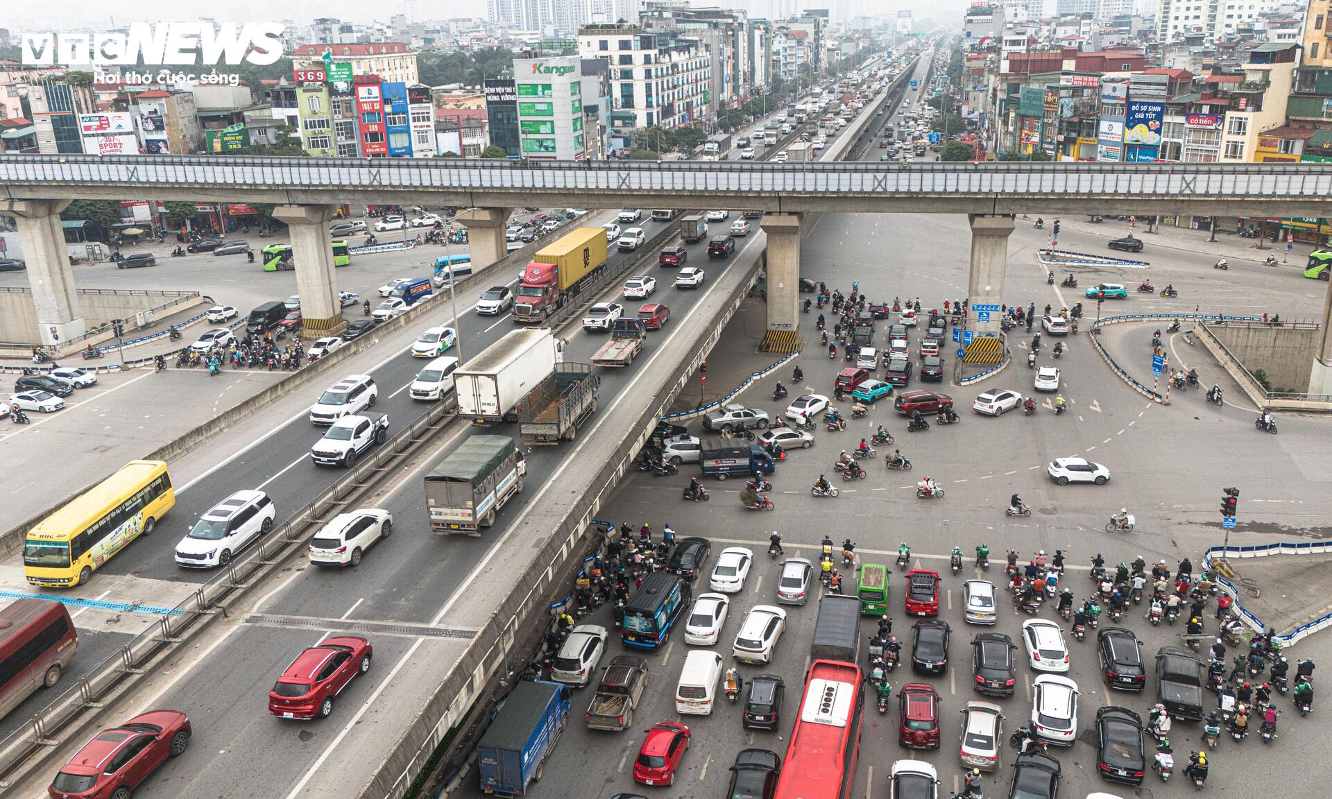 Khoảng 15h, tại khu vực đường vành đai 3 trên cao, các phương tiện xếp hàng dài qua nút giao Nguyễn Trãi - Khuất Duy Tiến.