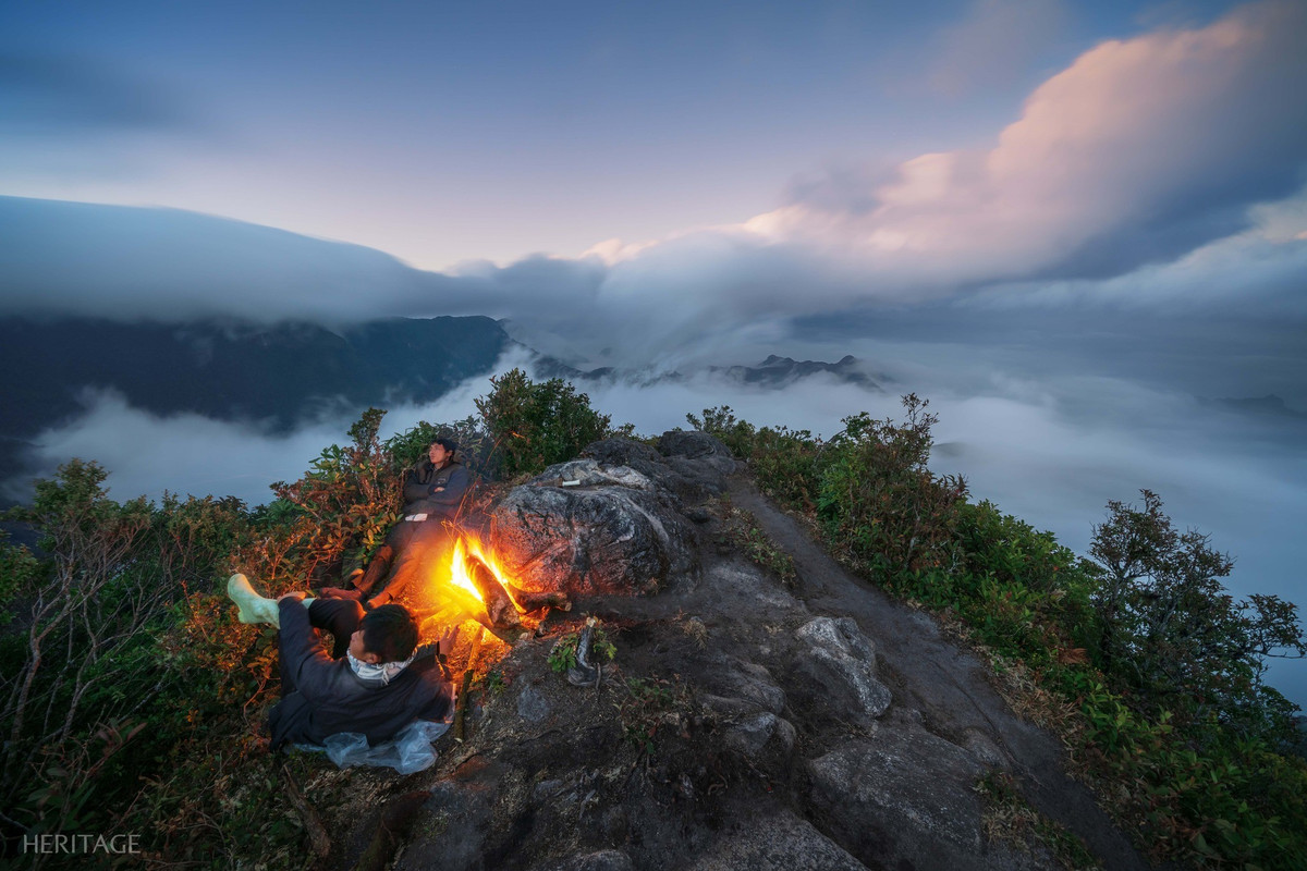 Hành trình bắt đầu từ dốc núi Muối cao 2.100 m, nơi du khách có thể chiêm ngưỡng biển mây bồng bềnh ngay dưới chân và cả dải ngân hà sáng lấp lánh nếu cắm trại qua đêm. Ảnh Vinh DAV