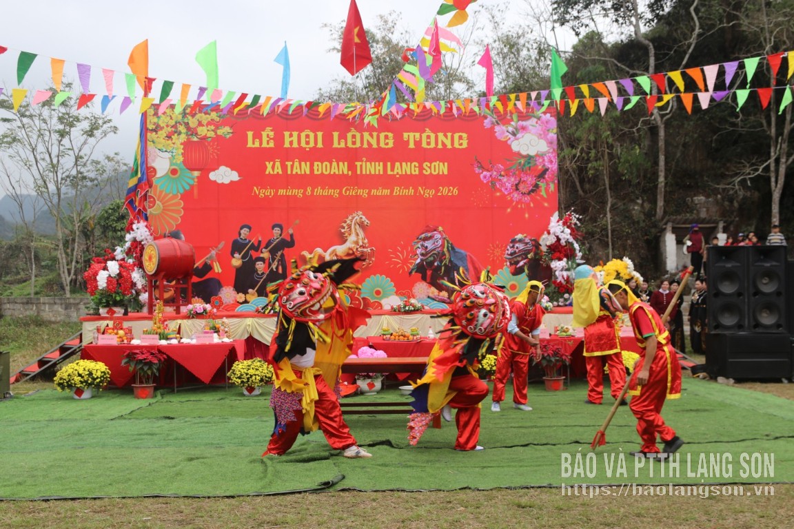 Đã thành thông lệ, cứ đến mùng 8 tháng Giêng, người dân và du khách thập phương lại nô nức trẩy hội Lồng tồng xã Tân Đoàn. Sau hồi trống khai hội rộn rã, các nghi thức truyền thống đã diễn ra trang trọng như: hành lễ tại chùa Chuông, cúng Thần Nông...