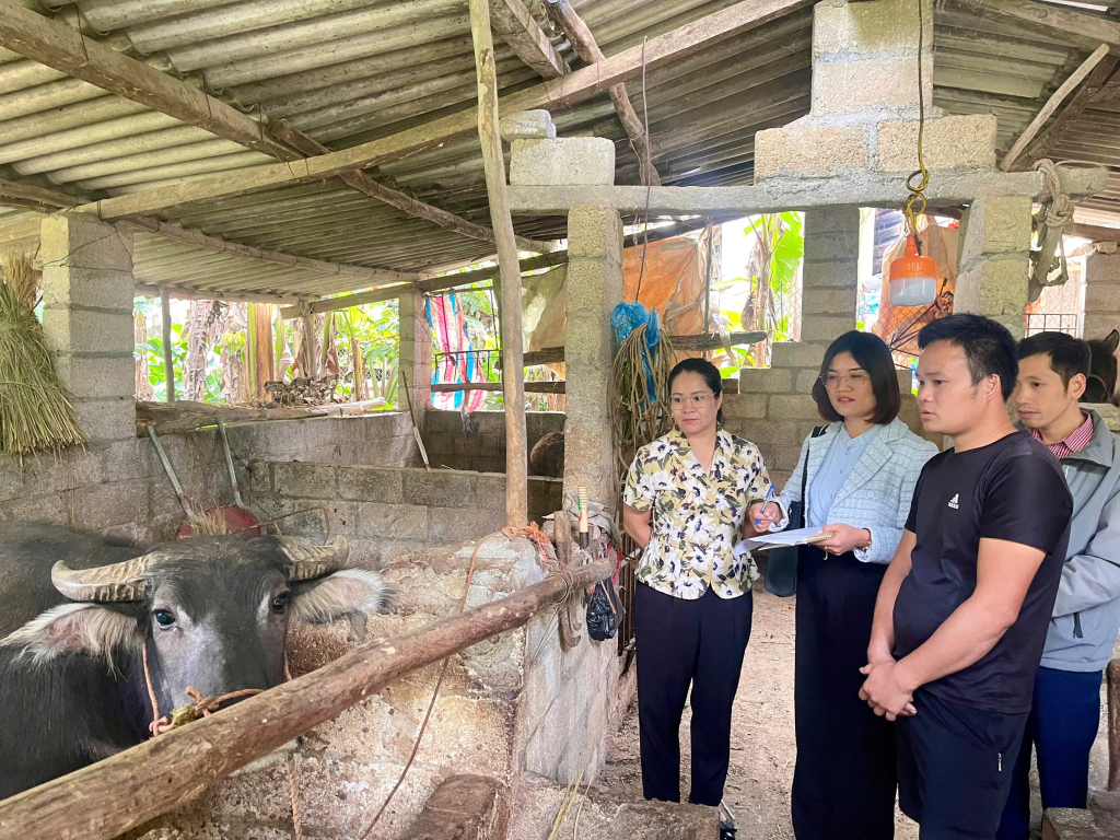 Đoàn giám sát của tỉnh kiểm tra thực tế tại hộ dân được hỗ trợ trâu cái sinh sản tại xóm Kéo Sỹ, xã Tổng Cọt.