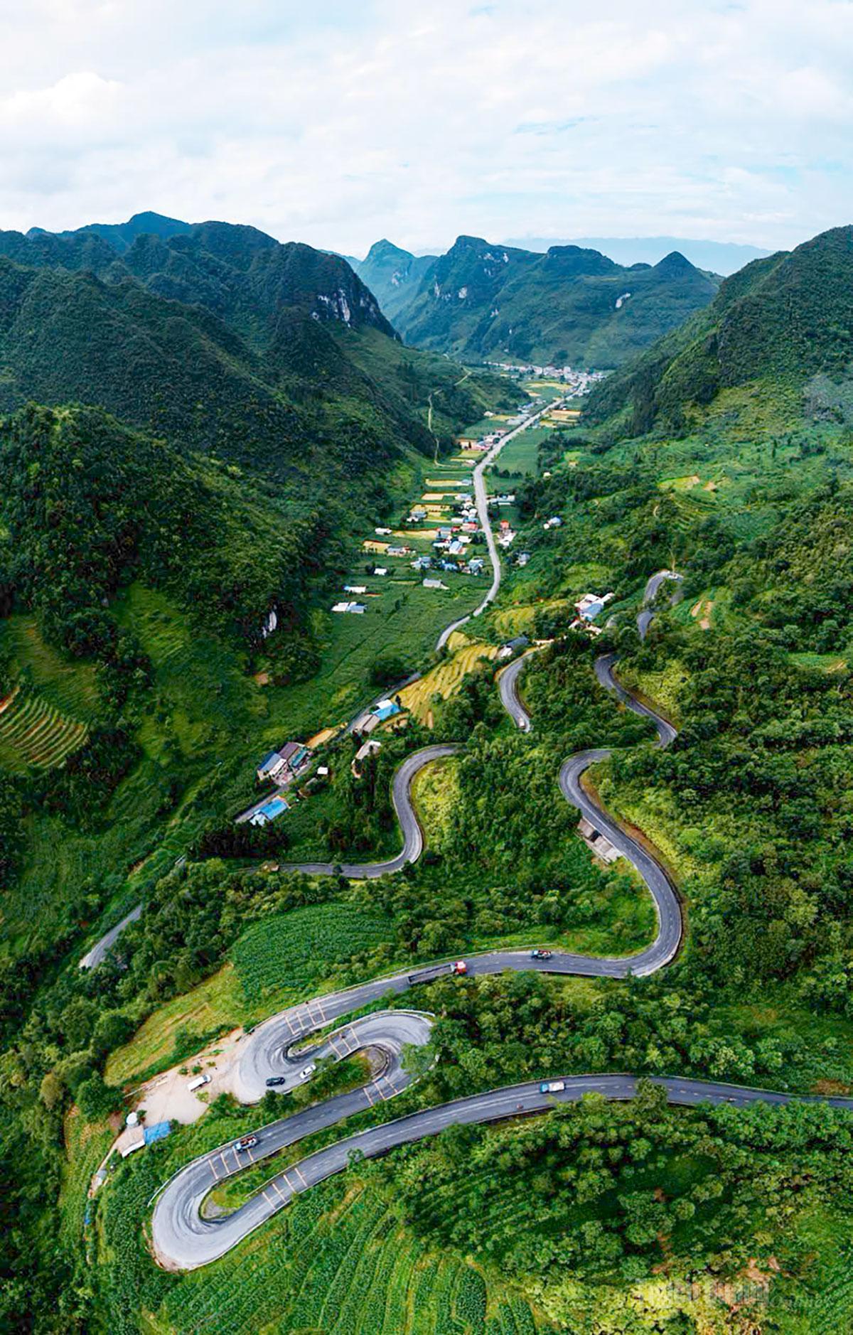 Đường Hạnh Phúc quanh co giữa núi đá tai mèo, đưa du khách qua những danh thắng nổi tiếng: Núi đôi Quản Bạ, dốc Thẩm Mã, thung lũng Sủng Là, Cột cờ Lũng Cú, dinh họ Vương, phố cổ Đồng Văn, đèo Mã Pì Lèng… Mỗi khúc cua là một bức tranh, mỗi mùa lại mang một gam màu khác. Nhưng xuân về, con đường như khoác áo mới, hồng rực hoa đào, vàng tươi hoa cải, trắng muốt hoa lê, hoa mận.