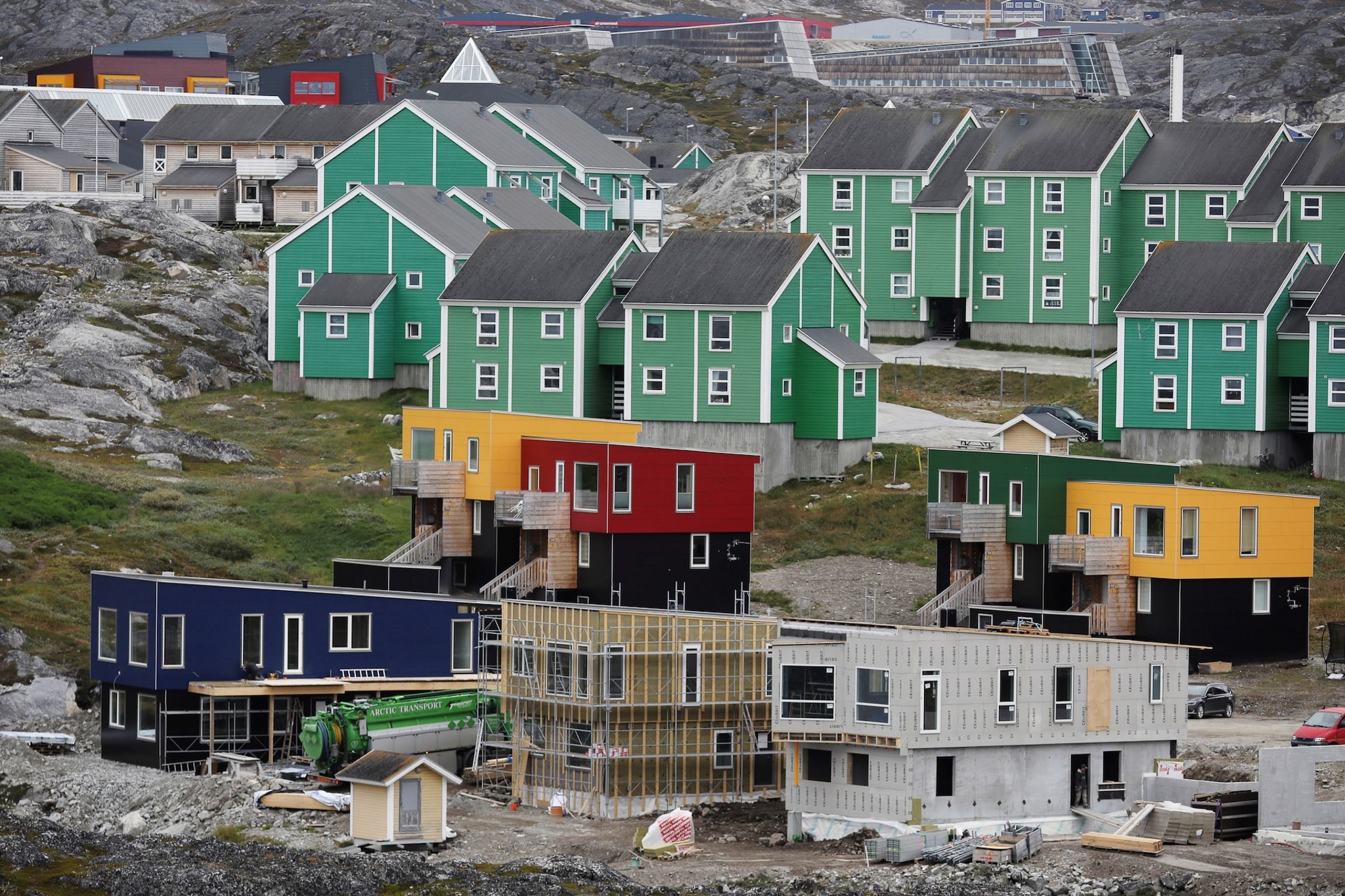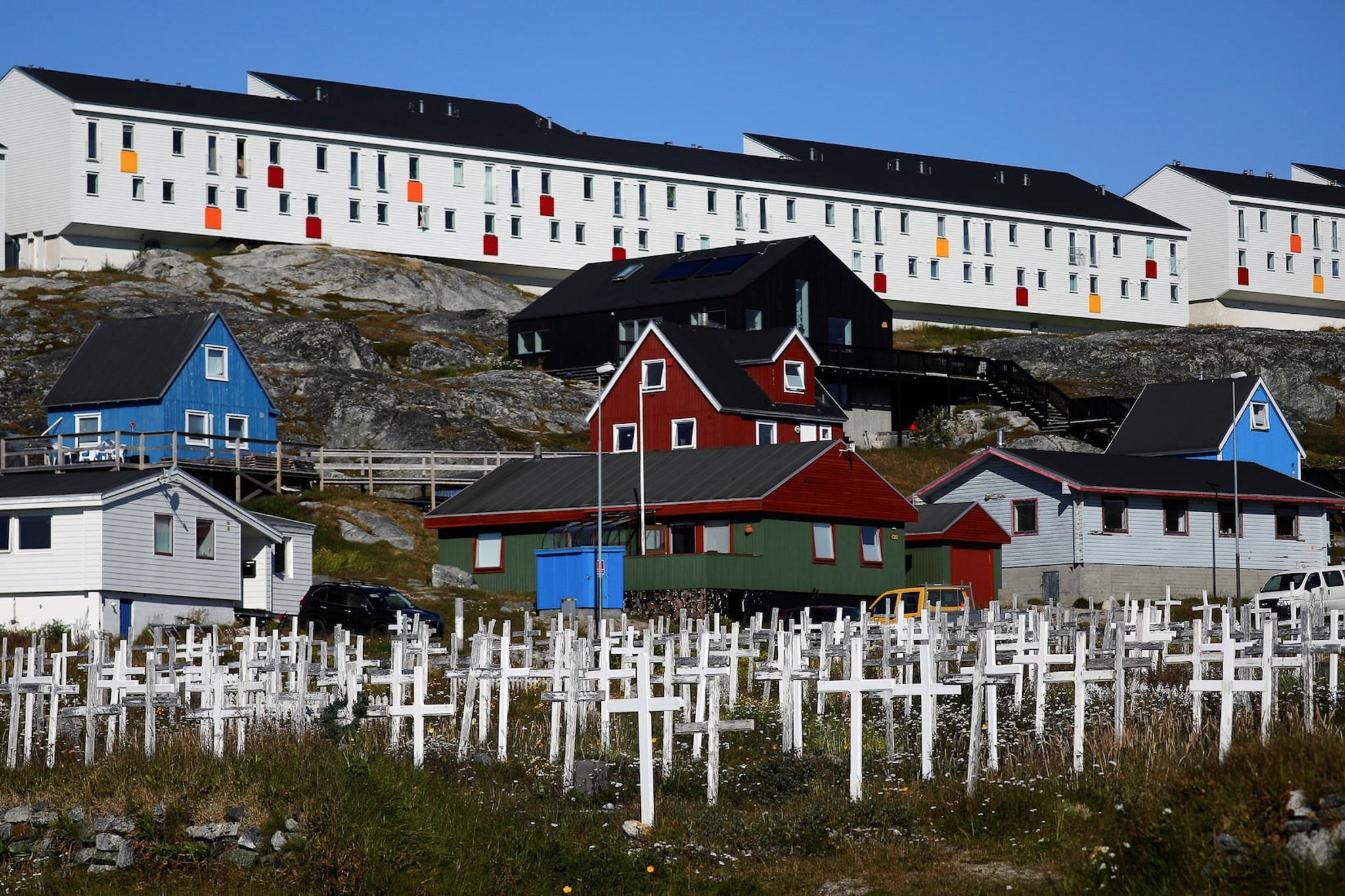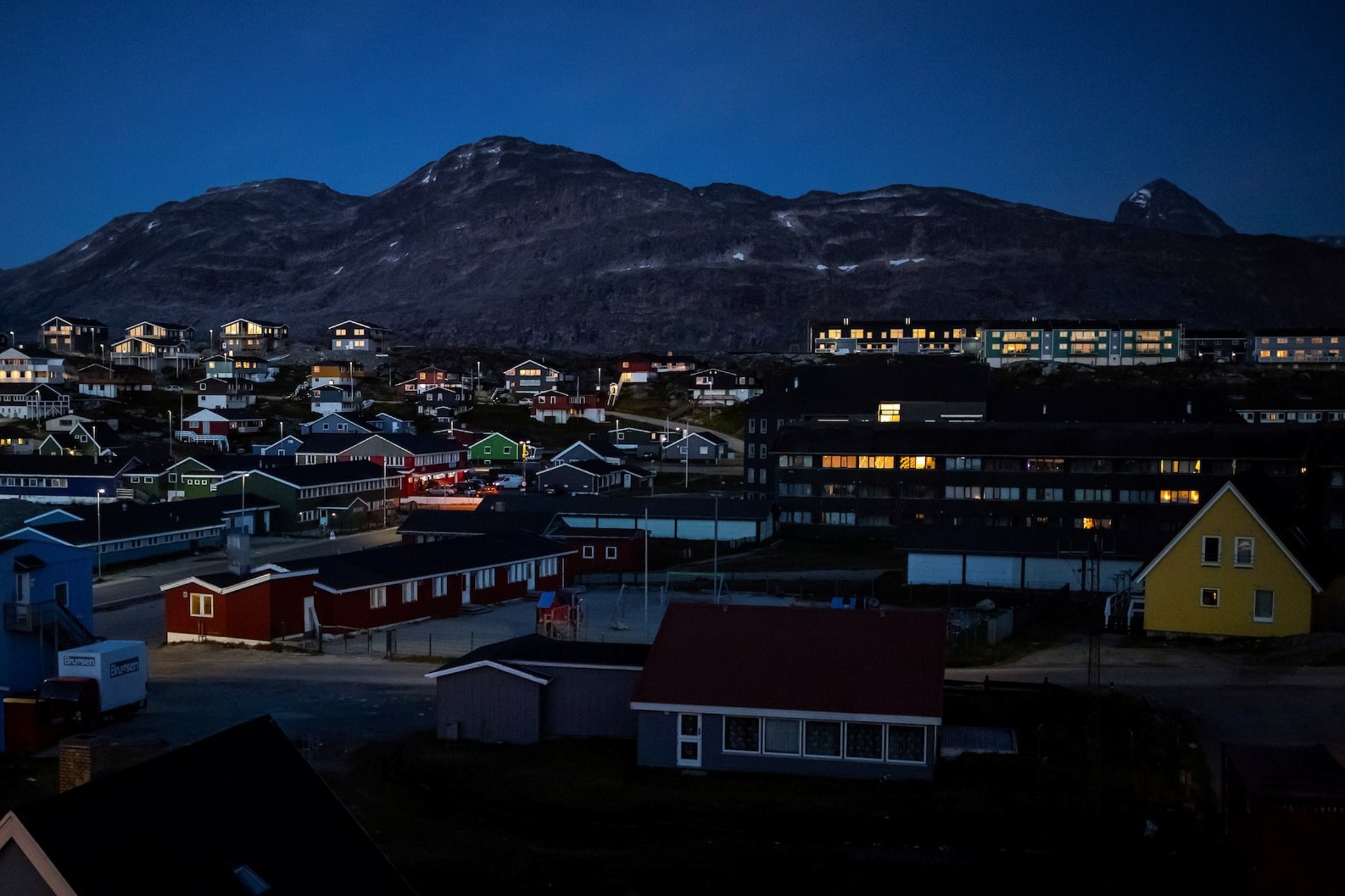 Greenland có diện tích 2,16 triệu km2, với khoảng 80% diện tích bị bao phủ bởi lớp băng dày hàng cây số, buộc người Inuit phải sống dọc theo bờ biển, trong những ngôi làng sơn đủ sắc màu rực rỡ.