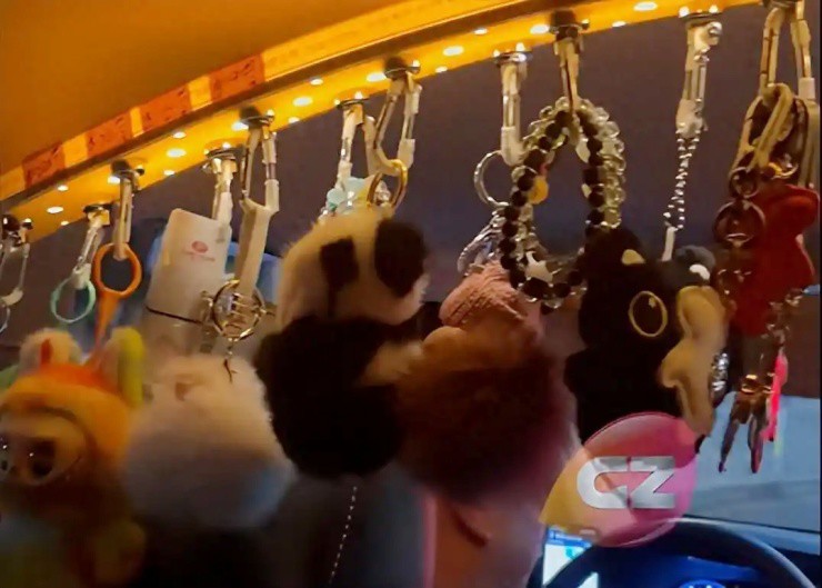 Nếu gọi xe ô tô công nghệ ở Quảng Châu, Quảng Đông, Trung Quốc, bạn sẽ có cơ duyên được ngồi trên chiếc xe treo đầy thú bông cực kỳ dễ thương như thế này. Từ trần xe, phía trên kính lái cho tới ghế sau của xe đều có rất nhiều thú bông, móc khóa, vòng tay với đa dạng mẫu mã và màu sắc.
