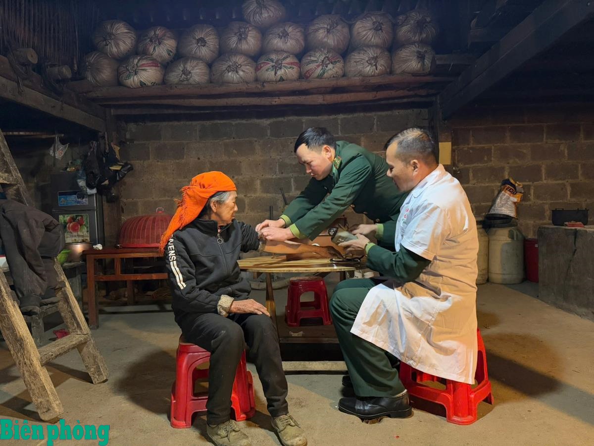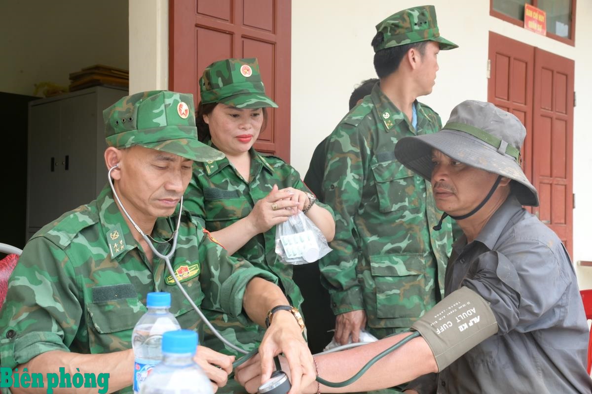 Cán bộ quân y Đồn Biên phòng Sơn Vĩ, Bộ đội Biên phòng tỉnh Tuyên Quang khám chữa bệnh miễn phí cho nhân dân trên địa bàn. Ảnh: Kim Khánh