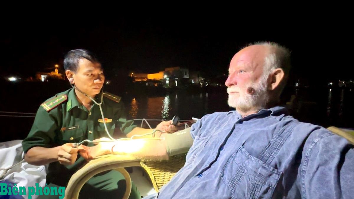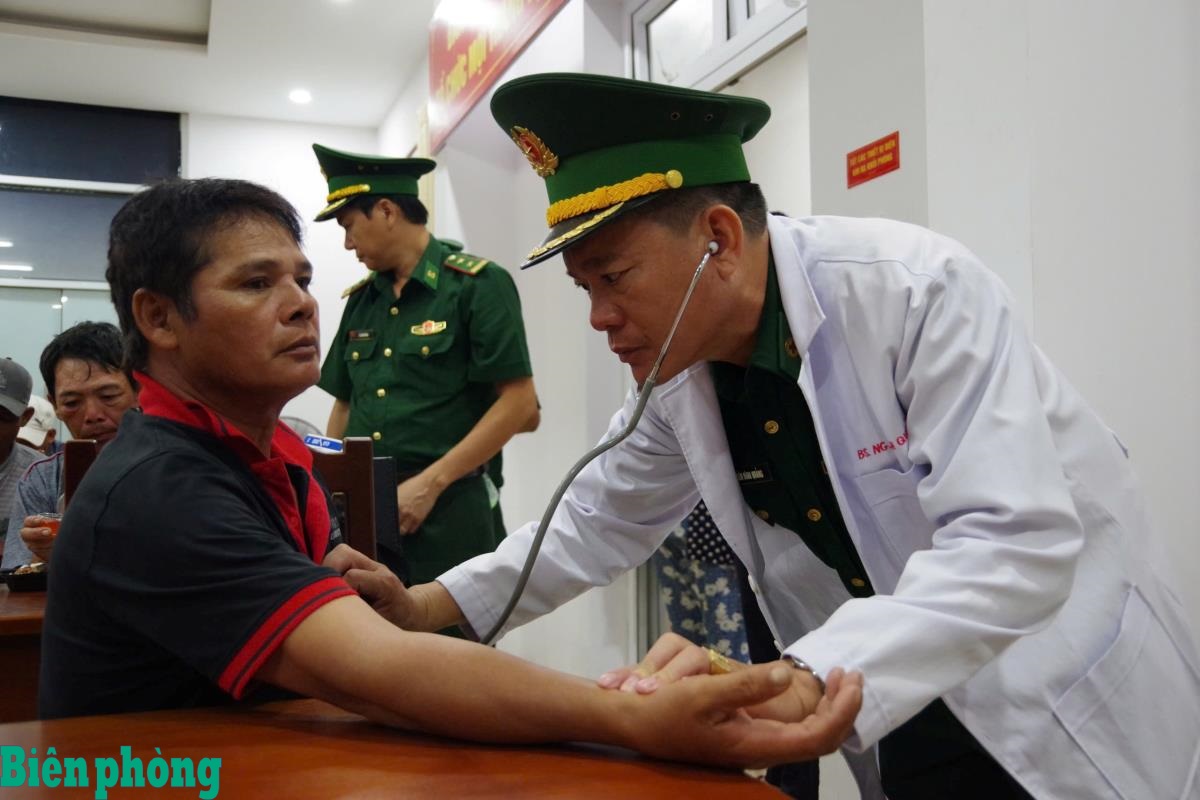 Quân y Ban Chỉ huy Biên phòng cửa khẩu cảng Bà Rịa - Vũng Tàu, Bộ đội Biên phòng thành phố Hồ Chí Minh thăm khám sức khỏe, chăm sóc y tế cho các ngư dân bị nạn trên biển. Ảnh: Quang Anh
