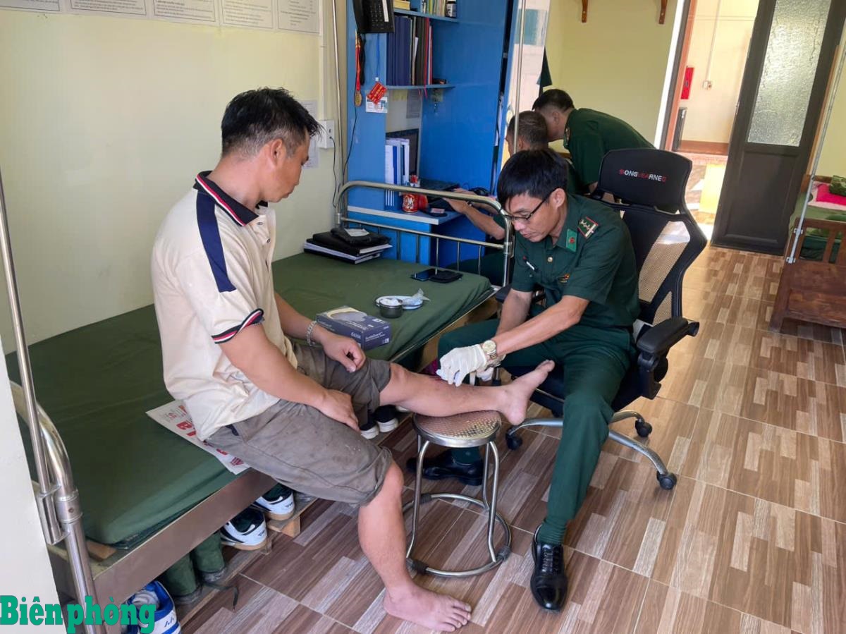 Cán bộ quân y Đồn Biên phòng Nậm Lạnh, Bộ đội Biên phòng tỉnh Sơn La sơ cứu cho người dân bị thương khi đi làm nương dẫy. Ảnh: Vì Hiện