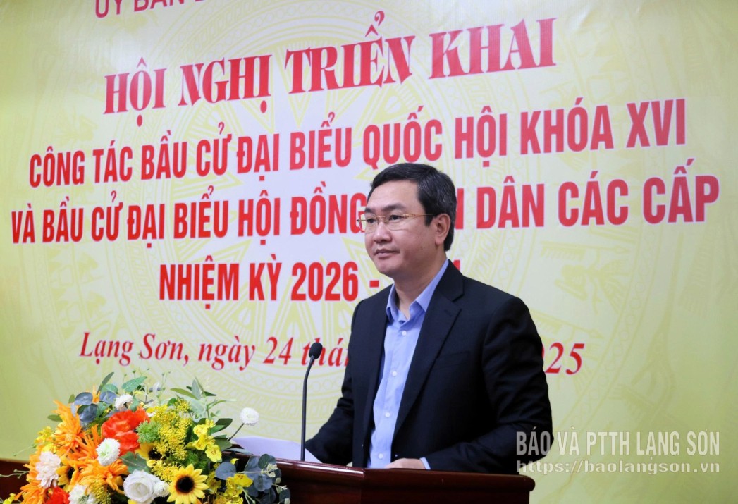 Phát biểu chỉ đạo hội nghị, đồng chí Phó Bí thư Thường trực Tỉnh ủy, Chủ tịch HĐND tỉnh yêu cầu: Các cấp, ngành, cơ quan, đơn vị, xã, phường trong toàn tỉnh tăng cường công tác thông tin, truyền truyền sâu rộng đến đội ngũ cán bộ, công chức, viên chức, người lao động và Nhân dân về ý nghĩa, tầm quan trọng của cuộc bầu cử đại biểu Quốc hội và bầu cử đại biểu HĐND các cấp nhiệm kỳ 2026 - 2031, đặc biệt trong bối cảnh thực hiện mô hình chính quyền địa phương 2 cấp. Tiếp tục quán triệt đầy đủ, nghiêm túc các văn bản chỉ đạo của Trung ương và của tỉnh; bảo đảm sự lãnh đạo toàn diện, trực tiếp của cấp ủy các cấp đối với công tác bầu cử, tạo sự tin tưởng, đồng thuận của các tầng lớp Nhân dân.