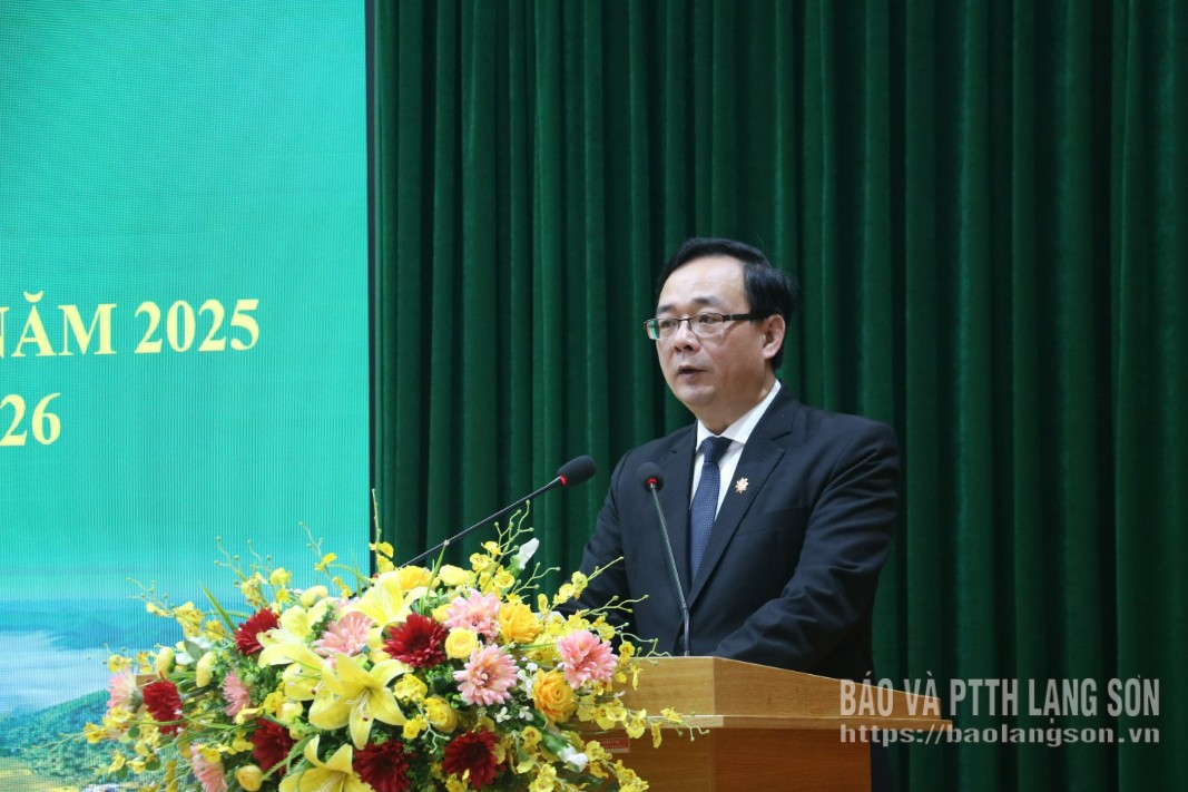 Phát biểu tại hội nghị, đồng chí Phó Chủ tịch Thường trực Ủy ban MTTQ Việt Nam tỉnh ghi nhận những kết quả và sự đóng góp tích cực của các cấp HND cho sự phát triển kinh tế - xã hội của tỉnh trong năm 2025.