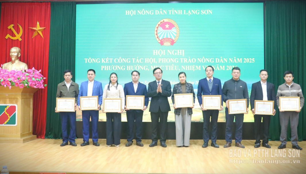 Nhân dịp này, Ban Chấp hành HND tỉnh đã tặng Bằng khen cho 9 tập thể HND cấp xã vì đã có thành tích xuất sắc trong công tác hội và phong trào nông dân năm 2025.