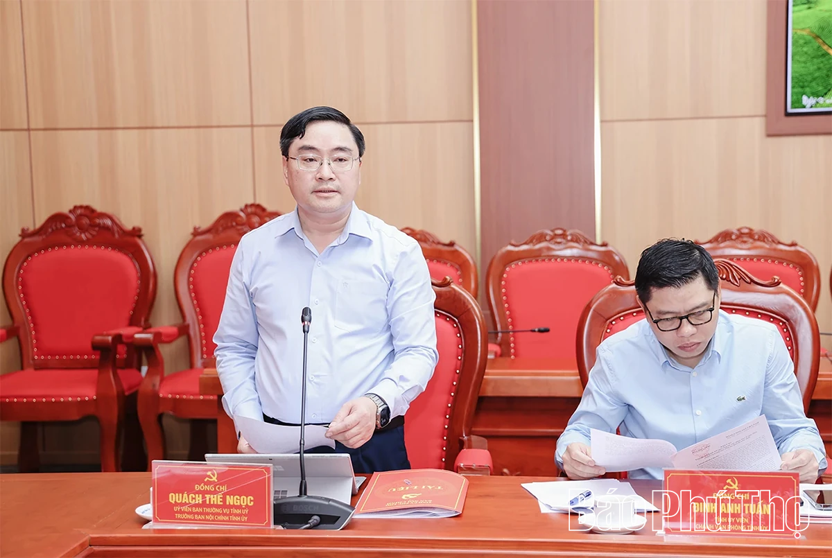 Đồng chí Quách Thế Ngọc - Ủy viên Ban Thường vụ Tỉnh ủy, Trưởng Ban Nội chính Tỉnh ủy phát biểu tại hội nghị.