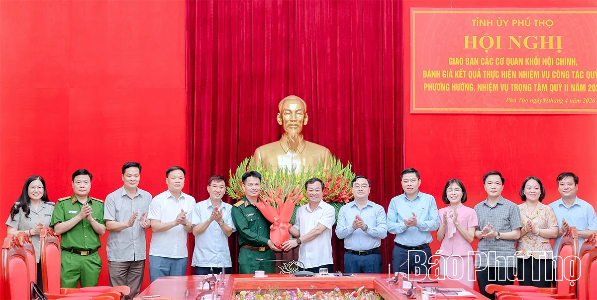 Tại hội nghị, các cơ quan khối nội chính đã tặng hoa chúc mừng Thiếu tướng Nguyễn Đình Cương - Ủy viên Ban Thường vụ Tỉnh ủy, Chỉ huy trưởng Bộ CHQS tỉnh được điều động, bố trí công tác tại địa bàn mới.