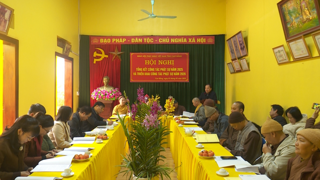 Phát biểu với hội nghị, đồng chí Nông Thanh Tùng, Ủy viên Ban Thường vụ Tỉnh ủy, Trưởng Ban Tuyên giáo và Dân vận Tỉnh ủy ghi nhận những kết quả đạt được trong công tác phật sự củaBan Trị sự Phật giáo tỉnh trong năm 2025. Thời gian tới, mong muốn Ban Trị sự Giáo hội Phật giáo tỉnh tiếp tục đồng hành cùng với các cơ quan, ban, ngành phối hợp tuyên truyền tăng ni phật tử và nhân dân sống tốt đời, đẹp đạo, thực hiện tốt các chủ trương của Đảng, chính sách pháp luật Nhà nước, chung tay xây dựng tỉnh ngày càng phát triển.
