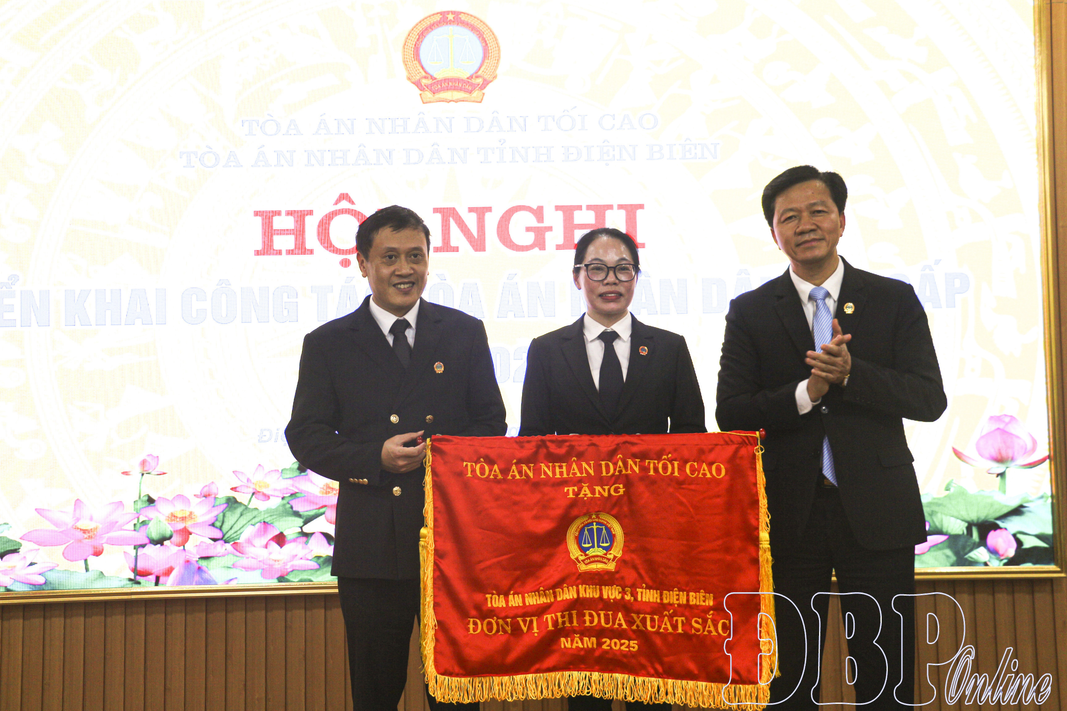 Nhân dịp này, Tòa án Nhân dân Tối cao tặng thưởng “Cờ thi đua Tòa án Nhân dân” cho Tòa án Nhân dân khu vực 3; 8 tập thể được tặng thưởng danh hiệu “Tập thể lao động xuất sắc”; tặng Bằng khen cho 1 tập thể và 12 cá nhân đã có thành tích xuất sắc trong thực hiện nhiệm vụ năm 2025.