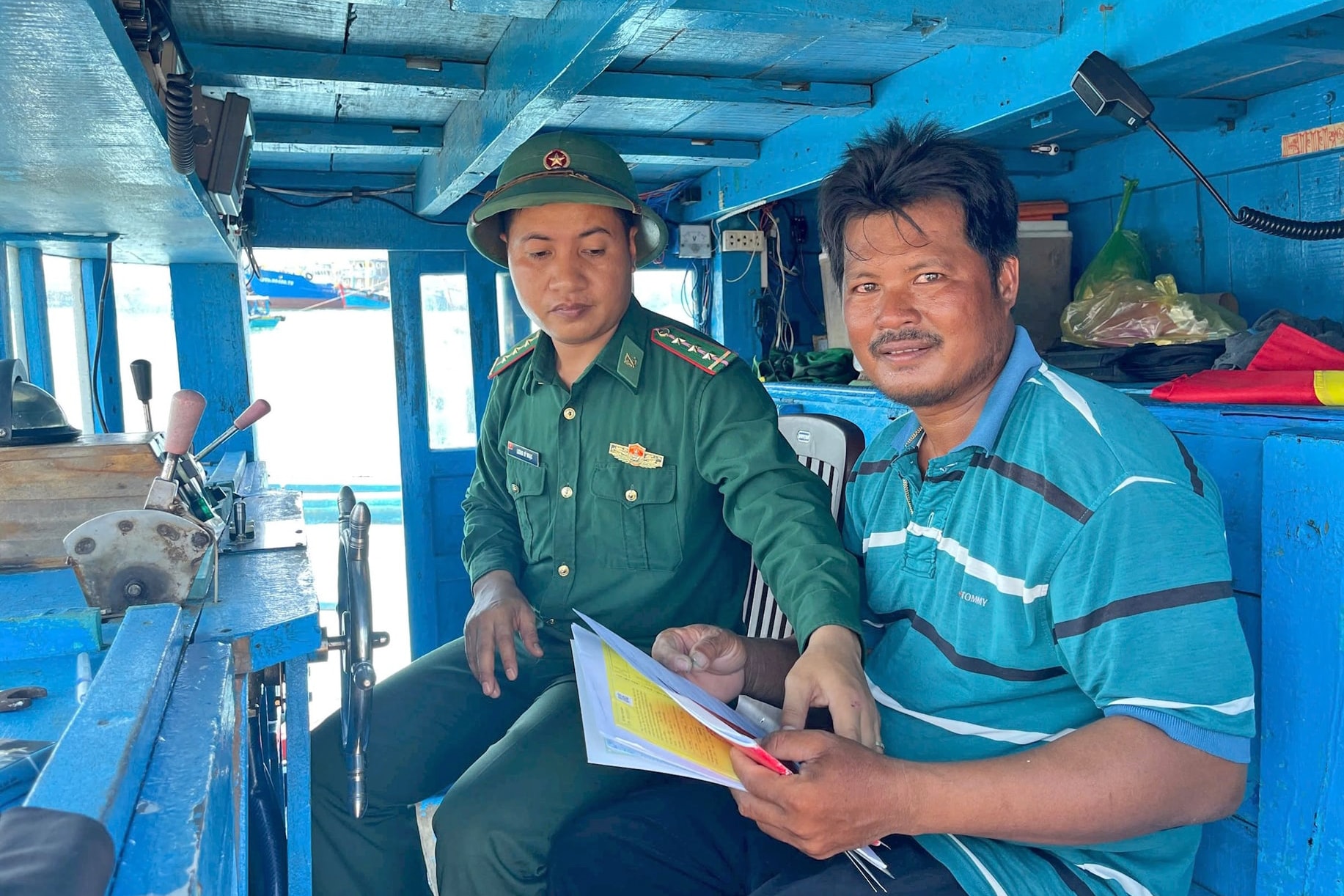 Lực lượng biên phòng hỗ trợ ngư dân hoàn thiện các thủ tục liên quan khi khai thác hải sản