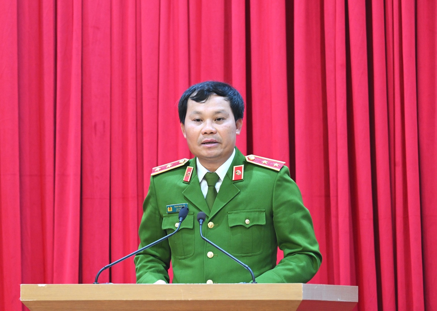 Cục trưởng Cục Cảnh sát hình sự Trung tướng Trần Ngọc Hà phát biểu và điều hành thảo luận tại Hội nghị.