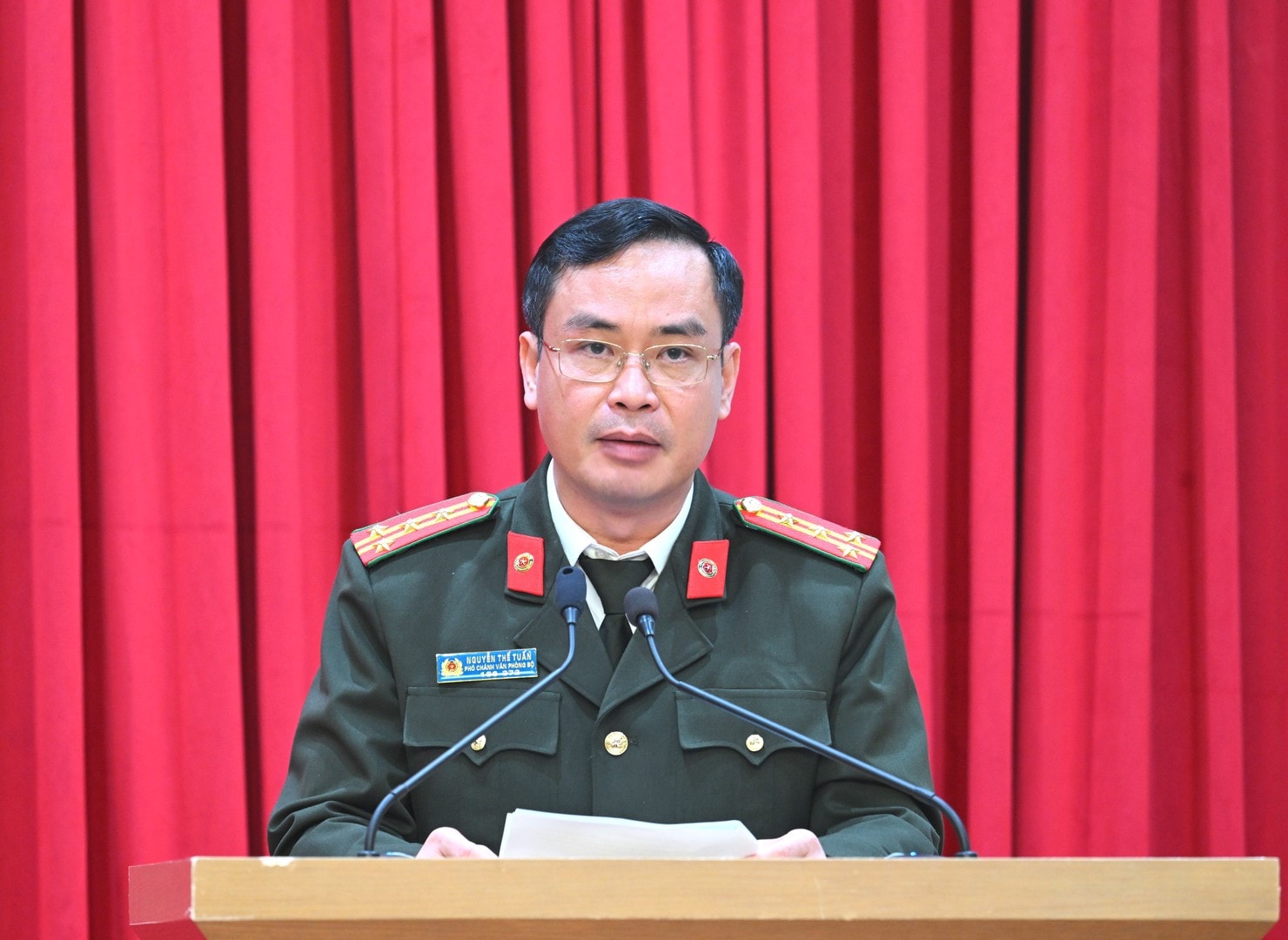 Phó Chánh Văn phòng Bộ Công an Đại tá Nguyễn Thế Tuấn báo cáo kết quả kiểm tra.
