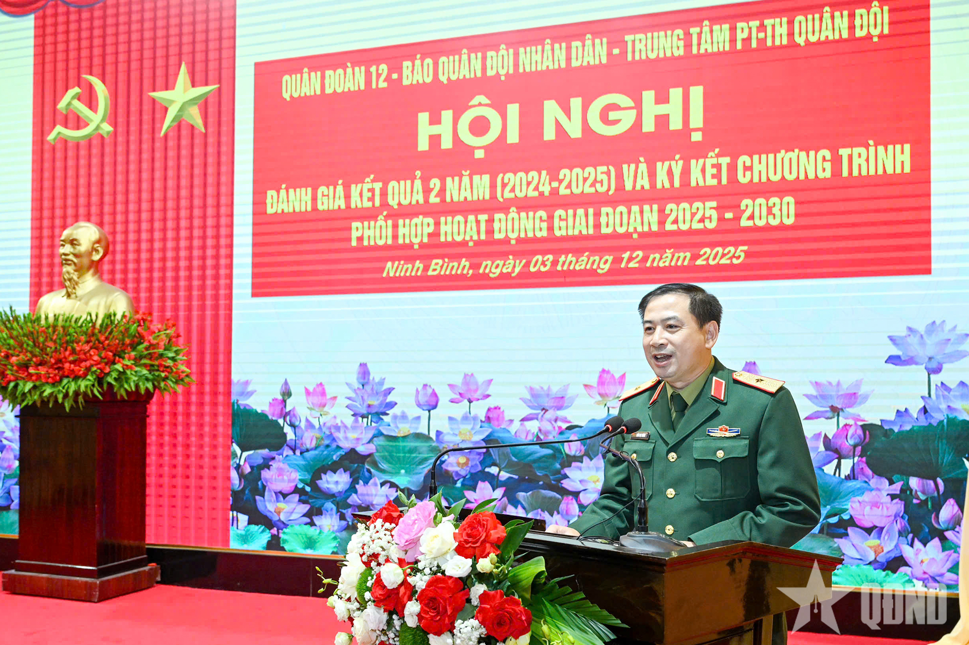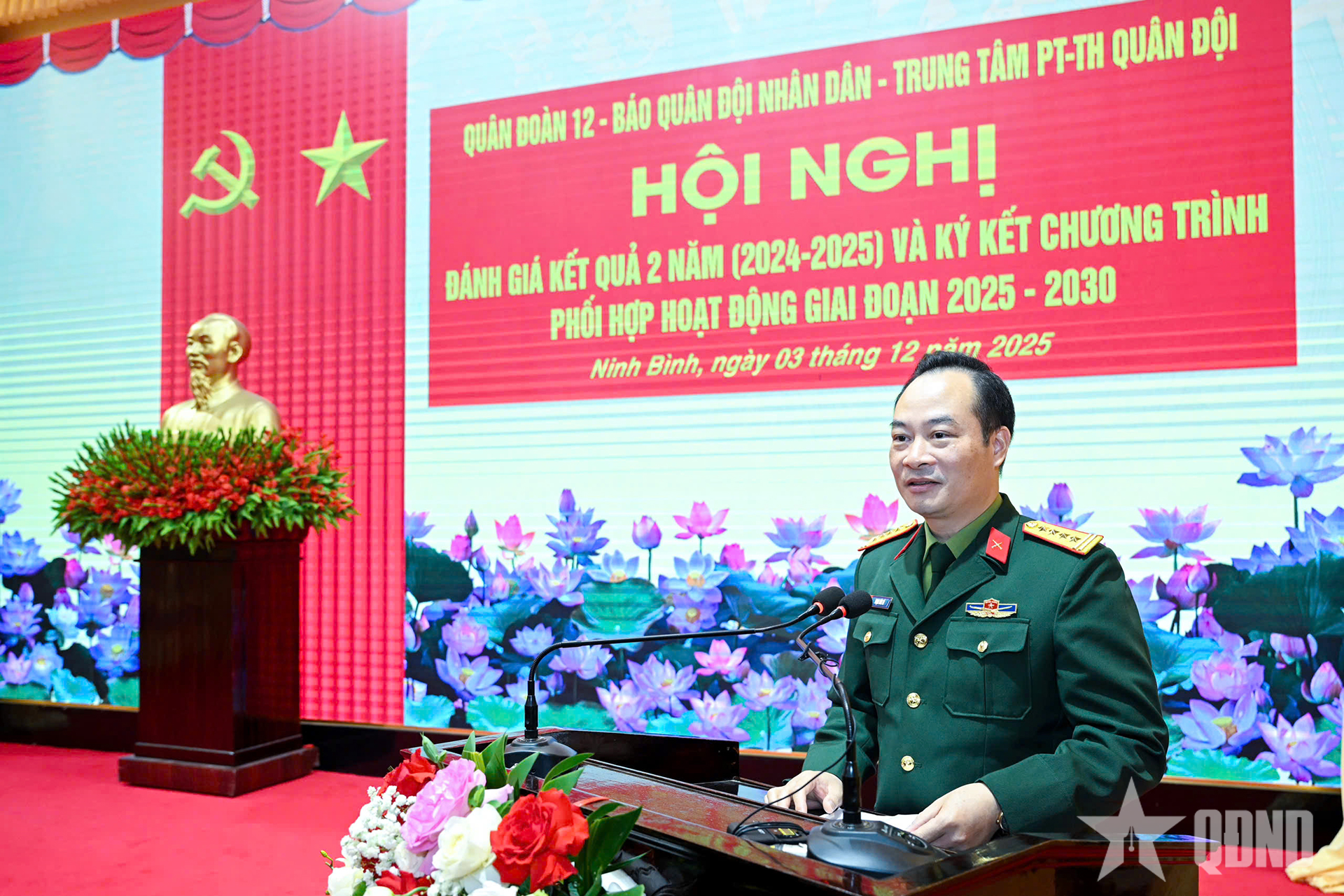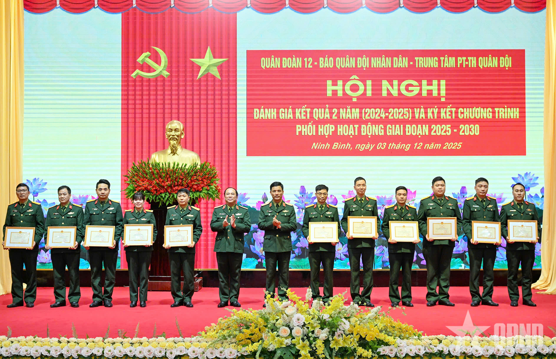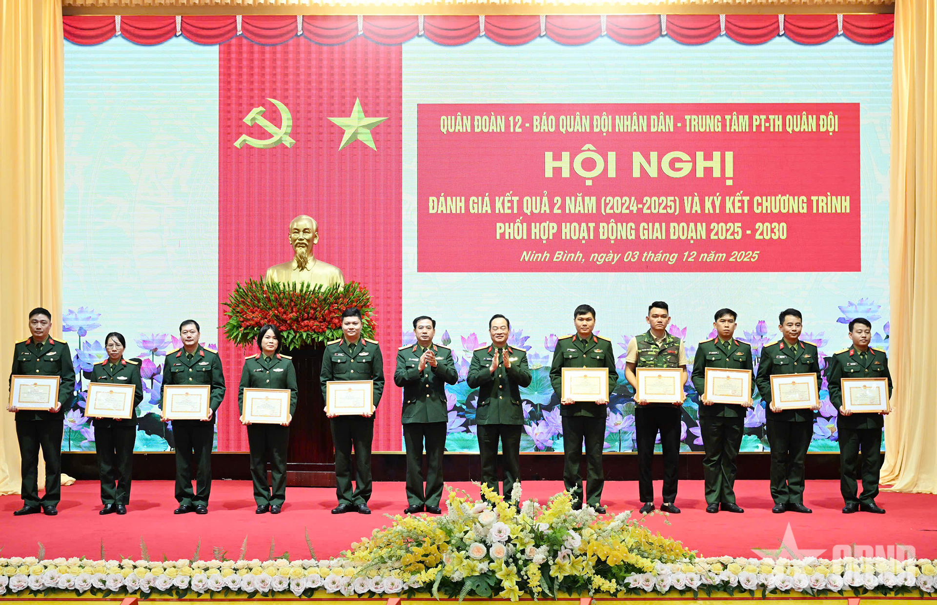 Tại hội nghị, lãnh đạo Quân đoàn 12, Báo QĐND và Trung tâm PT-TH Quân đội đã ký kết chương trình phối hợp hoạt động giai đoạn 2025-2030 giữa 3 đơn vị.