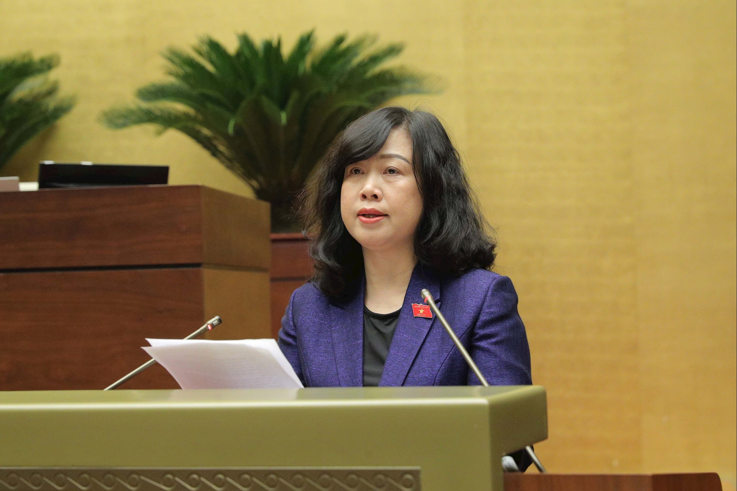 Trình bày Tờ trình Dự thảo Nghị quyết của Quốc hội về một số cơ chế, chính sách đột phá cho công tác bảo vệ, chăm sóc và nâng cao sức khỏe Nhân dân, Bộ trưởng Bộ Y tế Đào Hồng Lan cho biết, mục đích ban hành Nghị quyết nhằm triển khai hiệu quả Nghị quyết 72-NQ/TW trong đó xác định một số cơ chế, chính sách đặc thù cần triển khai thực hiện ngay các nội dung mà Bộ Chính trị giao và bảo đảm tính khả thi.