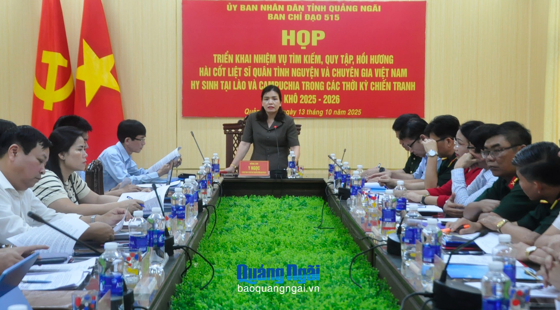 Chiều 13/10, Phó Chủ tịch Thường trực UBND tỉnh Y Ngọc, Trưởng Ban Chỉ đạo 515 tỉnh đã chủ trì cuộc họp triển khai nhiệm vụ tìm kiếm, quy tập, hồi hương hài cốt liệt sĩ quân tình nguyện và chuyên gia Việt Nam hy sinh tại Lào và Campuchia trong các thời kỳ chiến tranh mùa khô năm 2025 - 2026. Dự họp có các thành viên Ban Chỉ đạo 515 tỉnh; lãnh đạo các xã biên giới của tỉnh.