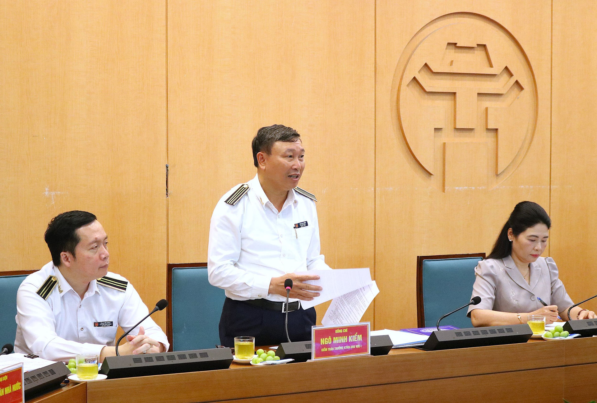 Cùng tham dự có: ông Ngô Minh Kiểm - Kiểm toán trưởng KTNN khu vực I (đơn vị trủ trì cuộc kiểm toán), Phó Kiểm toán trưởng Phạm Tiến Dũng - Trưởng Đoàn kiểm toán; đại diện lãnh đạo Vụ Tổng hợp KTNN, UBND TP. Hà Nội, các sở, ngành, phường, xã, Ban Quản lý dự án trên địa bàn Thành phố.