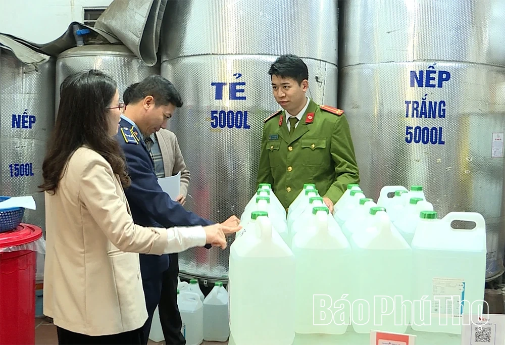 Đoàn kiểm tra cơ sở sản xuất rượu tại xã Vĩnh Tường.