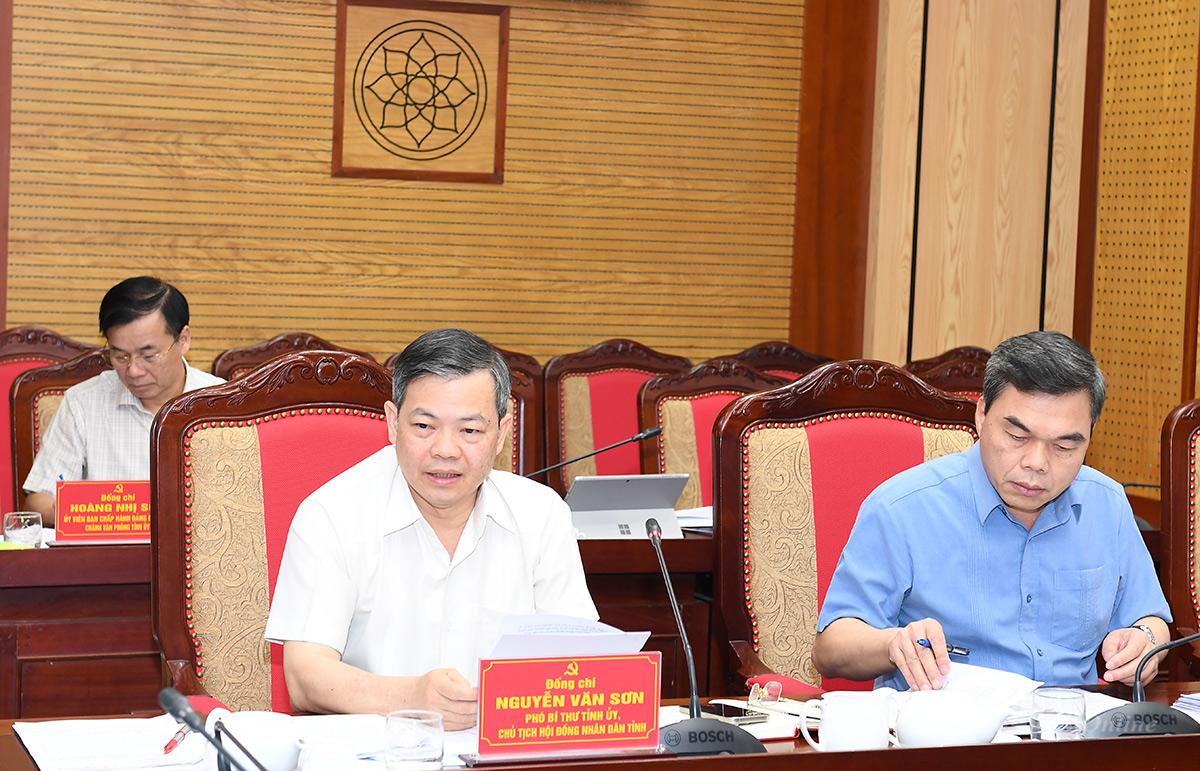 Đồng chí Phó Bí thư Tỉnh ủy, Chủ tịch HĐND tỉnh Nguyễn Văn Sơn phát biểu tại cuộc họp.
