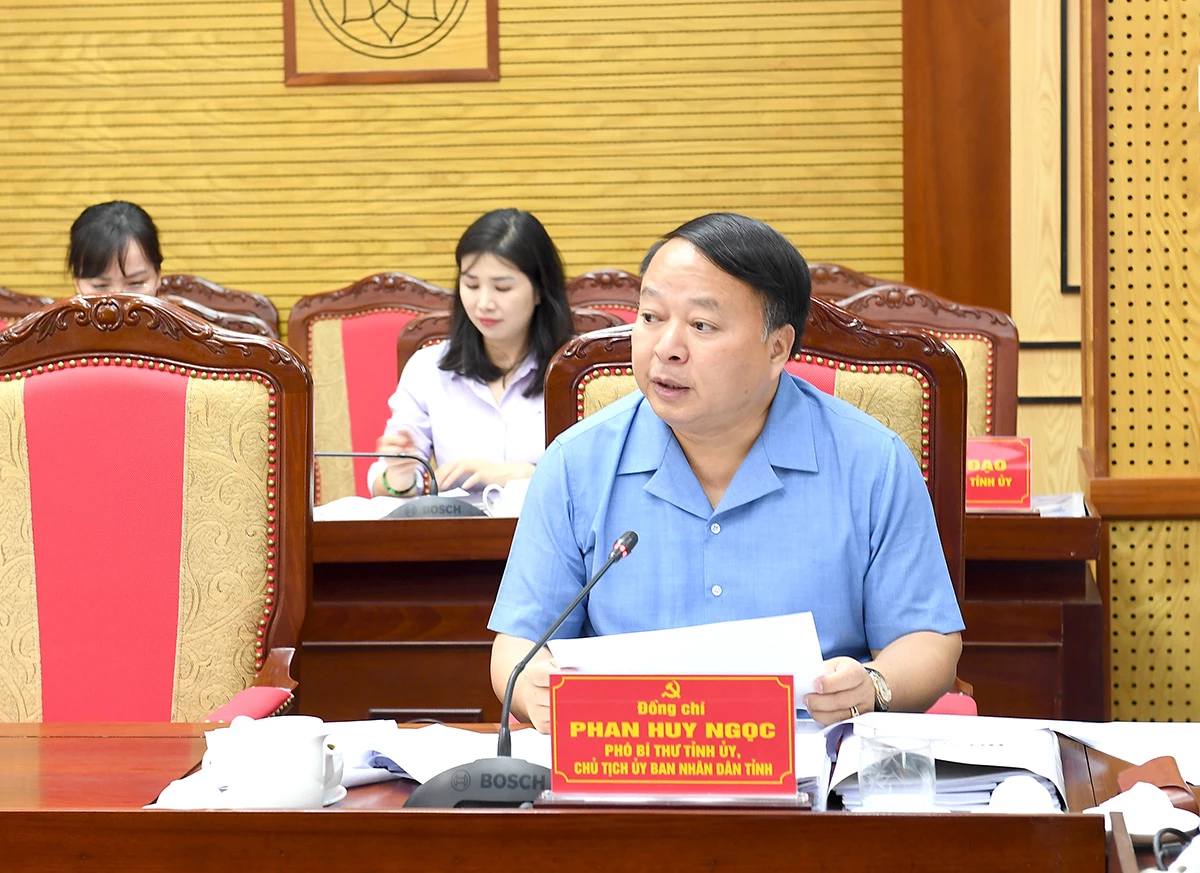 Đồng chí Phó Bí thư Tỉnh ủy, Chủ tịch UBND tỉnh Phan Huy Ngọc phát biểu tại cuộc họp.