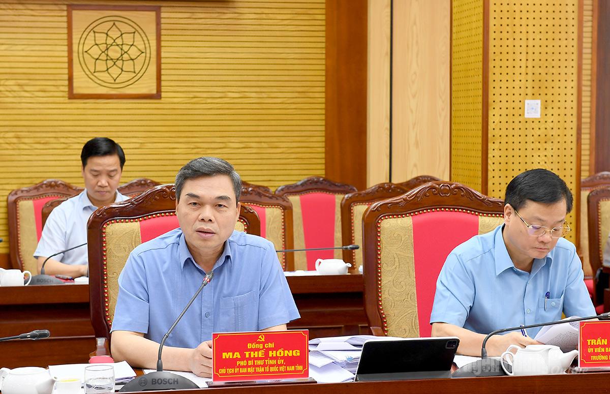 Đồng chí Phó Bí thư Tỉnh ủy, Chủ tịch Ủy ban MTTQ Việt Nam tỉnh Ma Thế Hồng phát biểu tại cuộc họp,.