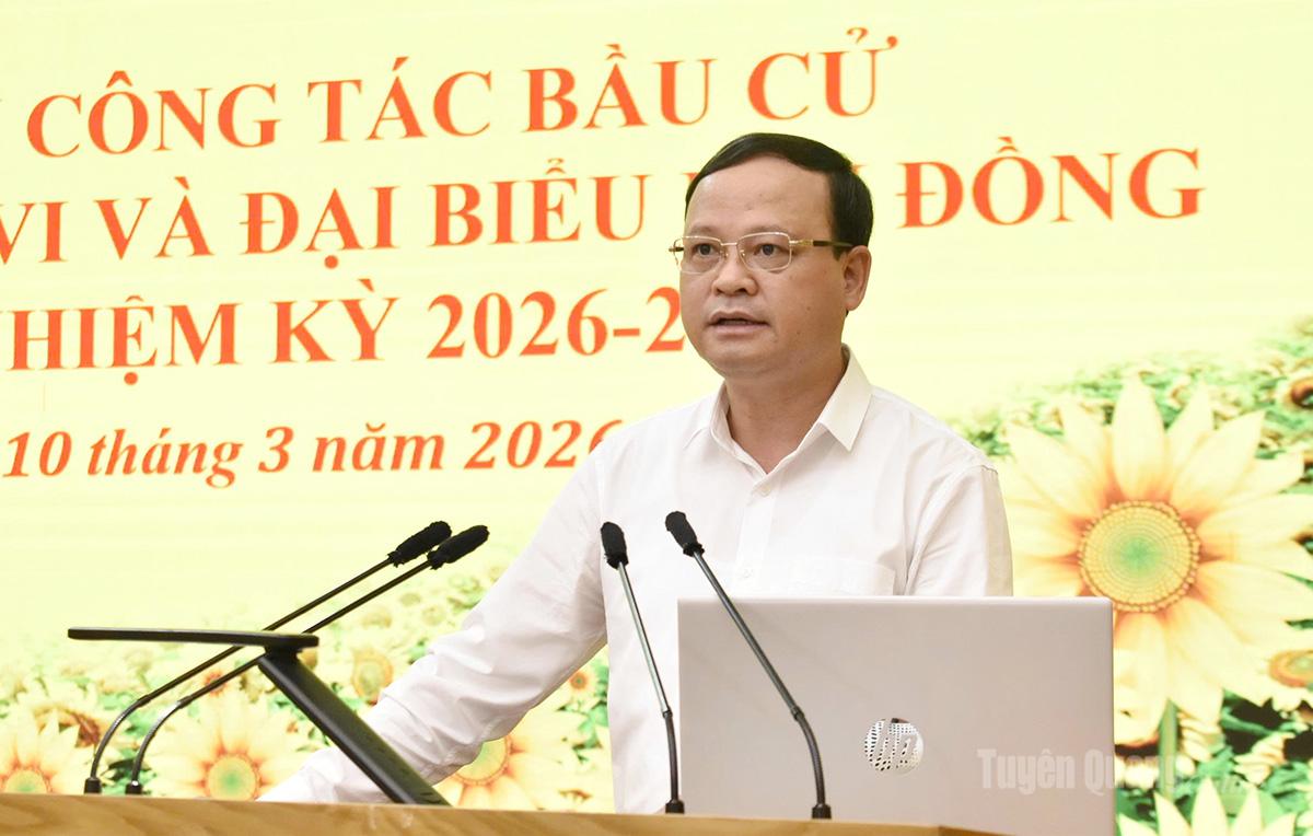 Phát biểu chỉ đạo tại hội nghị, đồng chí Nguyễn Mạnh Tuấn nhấn mạnh: Nguyên tắc bầu cử theo luật là phổ thông, bình đẳng, trực tiếp và bỏ phiếu kín. Do đó, trách nhiệm của các cơ quan, tổ chức trong công tác bầu cử phải được thực hiện thống nhất, nghiêm túc, đúng thẩm quyền. Ủy ban bầu cử tỉnh và các đồng chí được phân công phải bám sát địa bàn, xử lý kịp thời các tình huống phát sinh; thực hiện nghiêm chế độ thông tin, đảm bảo thực hiện thành công cuộc bầu cử đại biểu Quốc hội khóa XVI và đại biểu Hội đồng nhân dân các cấp, nhiệm kỳ 2026 – 2031.