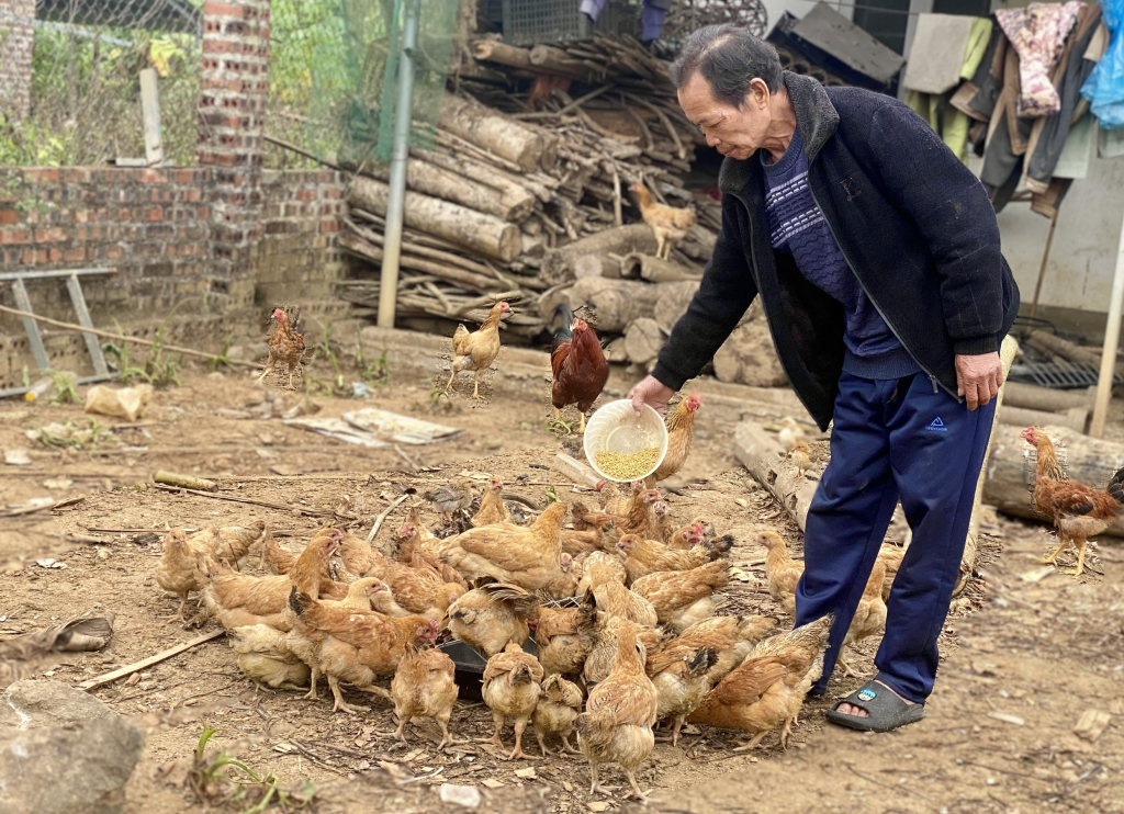 Gia đình ông Long Văn Nhập, tổ dân phố 1, phường Nùng Trí Cao được hỗ trợ từ Dự án chăn nuôi gà thương phẩm thuộc Chương trình Mục tiêu quốc gia giảm nghèo bền vững.