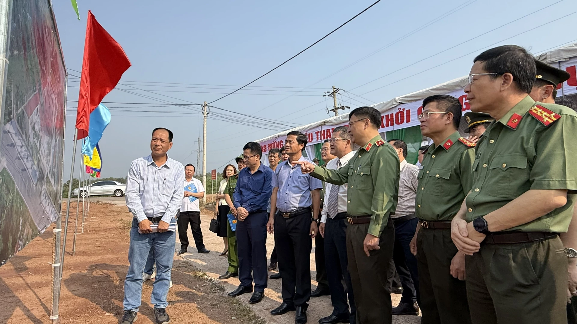 Đồng chí Thiếu tướng Nguyễn Thanh Liêm, Giám đốc Công an tỉnh đề nghị các đơn vị thi công an toàn, tiết kiệm, hiệu quả, đúng tiến độ - Ảnh: Hoàng Hùng