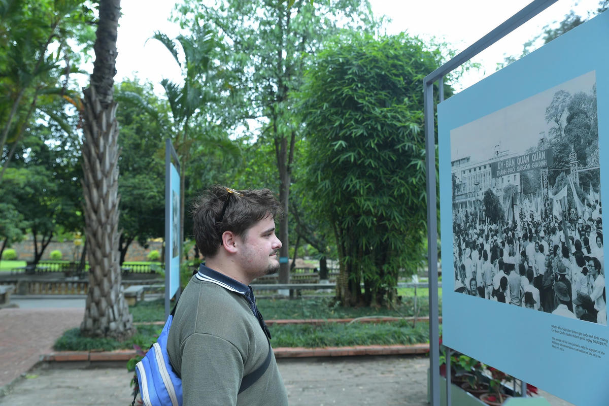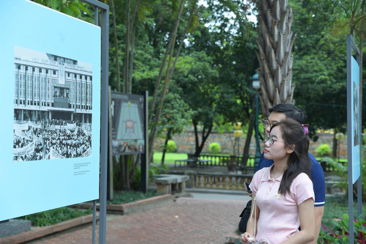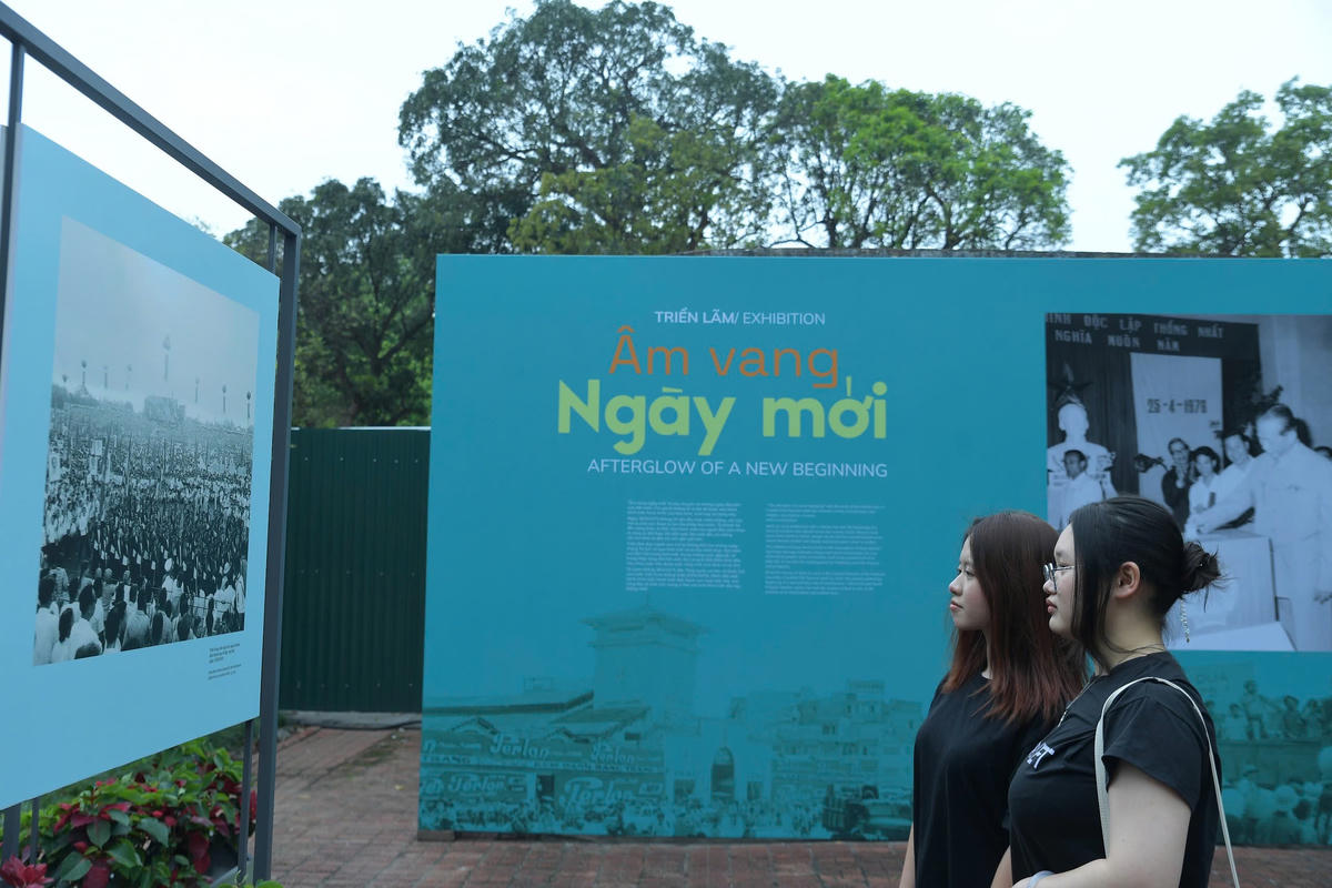Triển lãm ảnh tư liệu “Âm vang ngày mới” cũng đã thu hút sự quan tâm của các bạn trẻ.