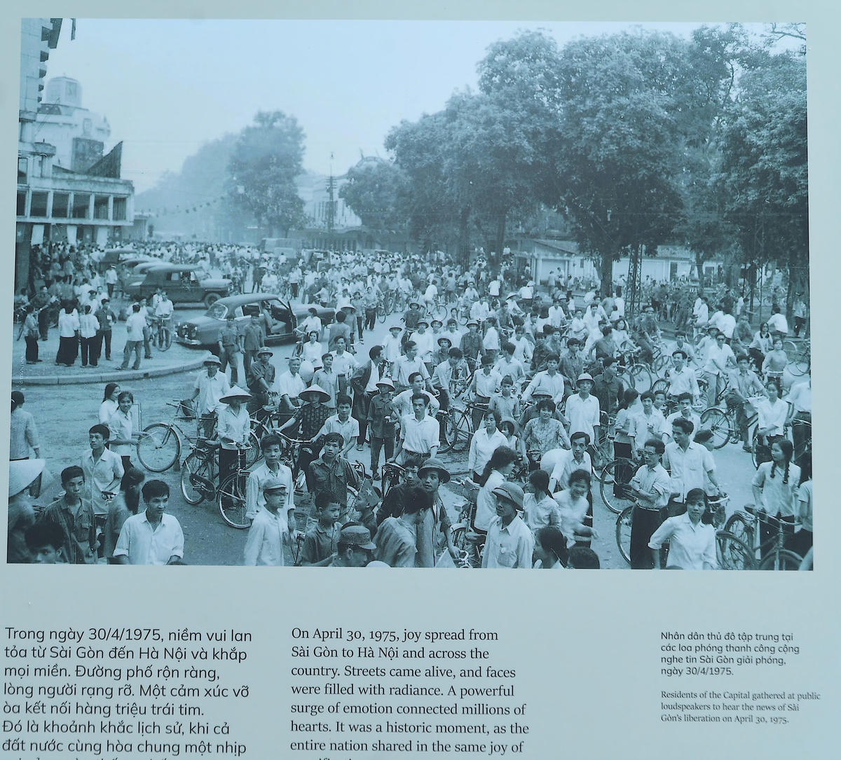 Người dân Thủ đô tập trung tại loa phóng thanh công cộng nghe tin Sài Gòn giải phóng, ngày 30/4/1975.