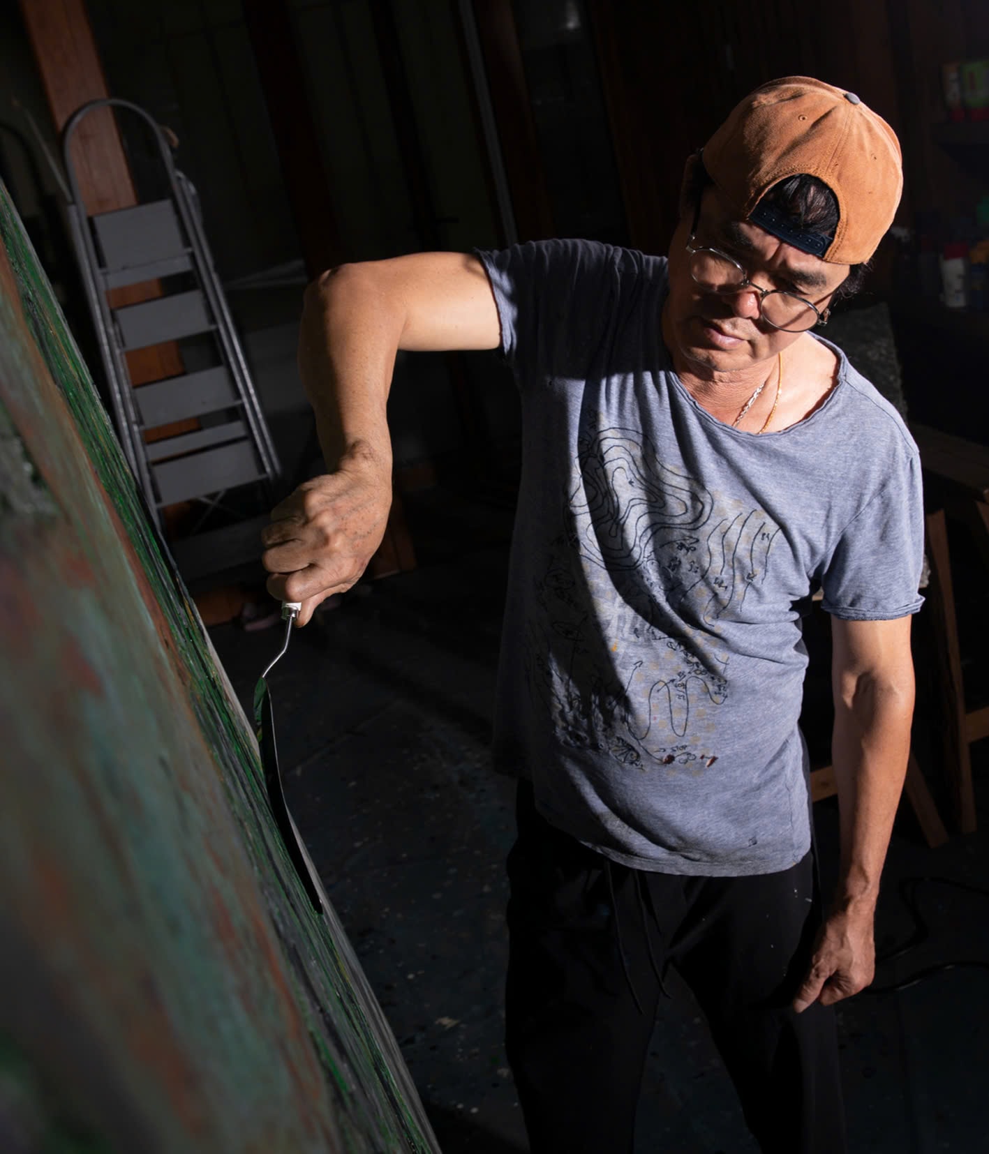 Đinh Phong là họa sĩ miệt mài thực hành và có năng lượng sáng tạo bền bỉ. Ảnh: YK