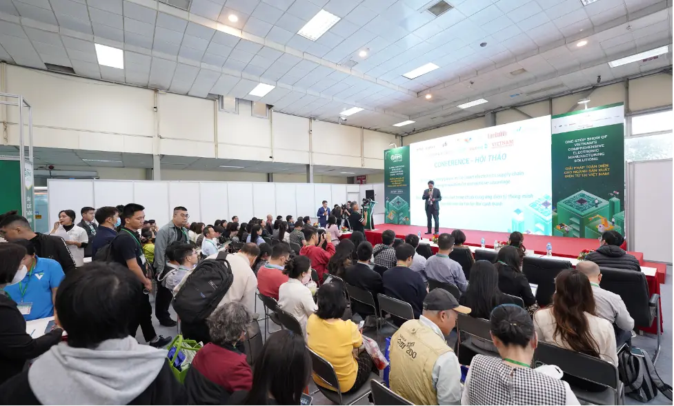 Song song với Chương trình Kết nối giao thương, GEIMS Việt Nam 2025 tổ chức chuỗi hội thảo chuyên ngành quy tụ các chuyên gia, hiệp hội và doanh nghiệp hàng đầu trong lĩnh vực điện tử, bán dẫn và sản xuất thông minh. Mở đầu là Hội thảo “Xây dựng chuỗi cung ứng bền vững ESG: Từ lý thuyết đến thực tiễn” do VEIA, Hanel PT và các tổ chức tư vấn chính sách đồng tổ chức, mang đến góc nhìn toàn diện về ESG trong doanh nghiệp Việt Nam. Tiếp nối là Tọa đàm Bán dẫn Việt Nam 2025 do Liên hiệp các Hội Khoa học – Kỹ thuật Việt Nam, SEVINA và Acroview Technology đồng tổ chức, thảo luận chiến lược phát triển nguồn nhân lực, ứng dụng công nghệ chip và mở rộng hợp tác quốc tế. Các phiên tiếp theo tập trung vào công nghệ sản xuất thông minh, với Samsung Việt Nam chia sẻ dự án Nhà máy thông minh, VNPT Technology trình bày giải pháp nâng cao năng lực R&D, và Hiệp hội SMT cập nhật xu hướng công nghệ lắp ráp bề mặt.
