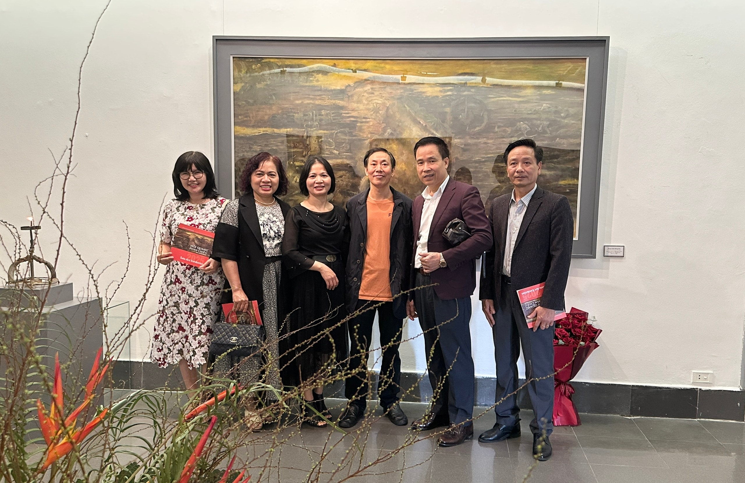 Họa sĩ Nguyễn Trọng Tài (thứ 3, từ phải sang) tại triển lãm