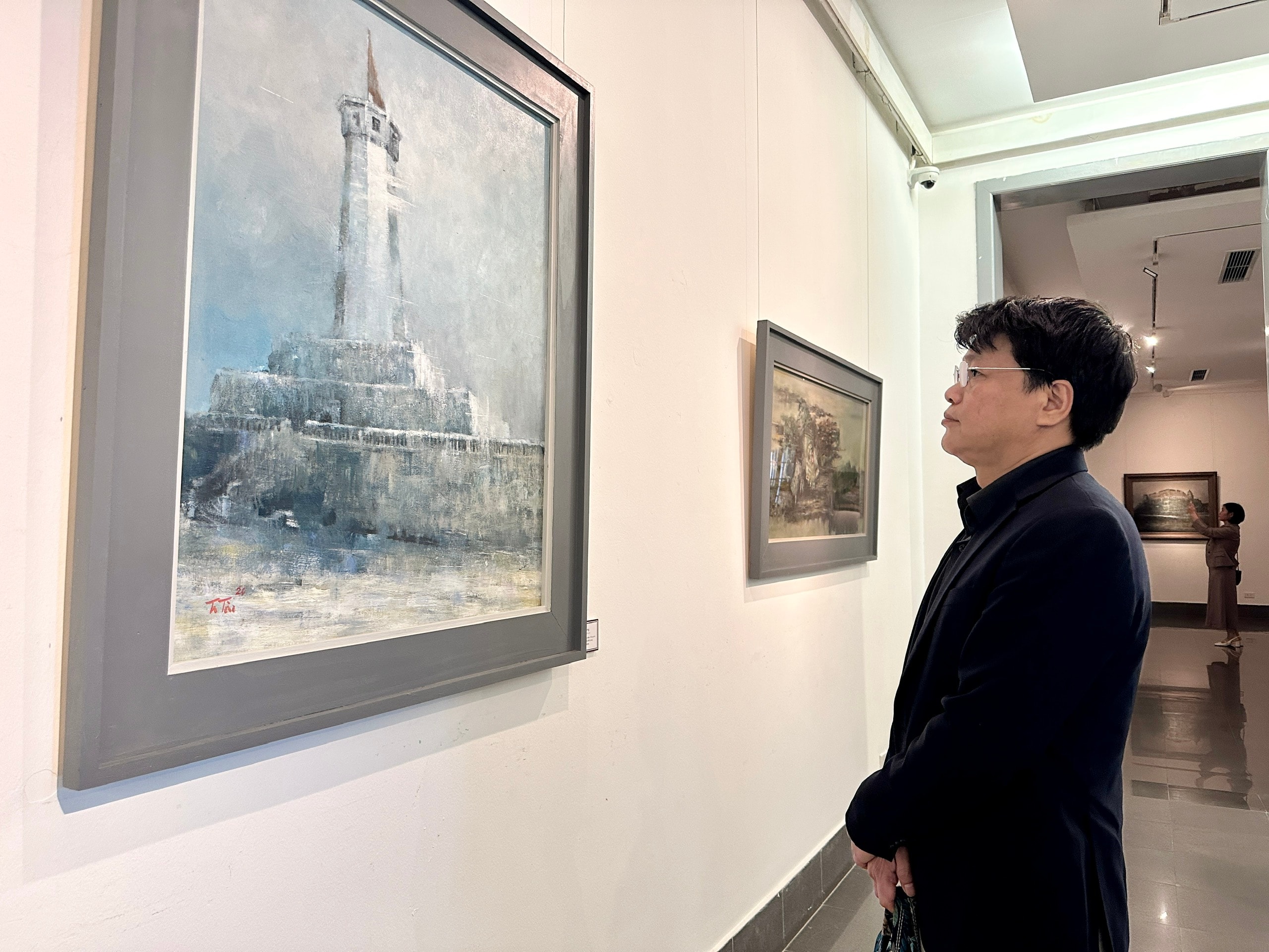 Trong triển lãm, họa sĩ Nguyễn Trọng Tài giới thiệu các tác phẩm sơn dầu về chủ đề phế tích, kiến trúc cổ… mang đến cảm nhận về chiều sâu của lịch sử và sự tàn phai của thời gian. Đó là một góc nhìn nghiêm khắc về văn minh nguồn cội, nơi tư duy khắc kỷ được thể hiện qua gam màu trầm và bố cục kiên cố…