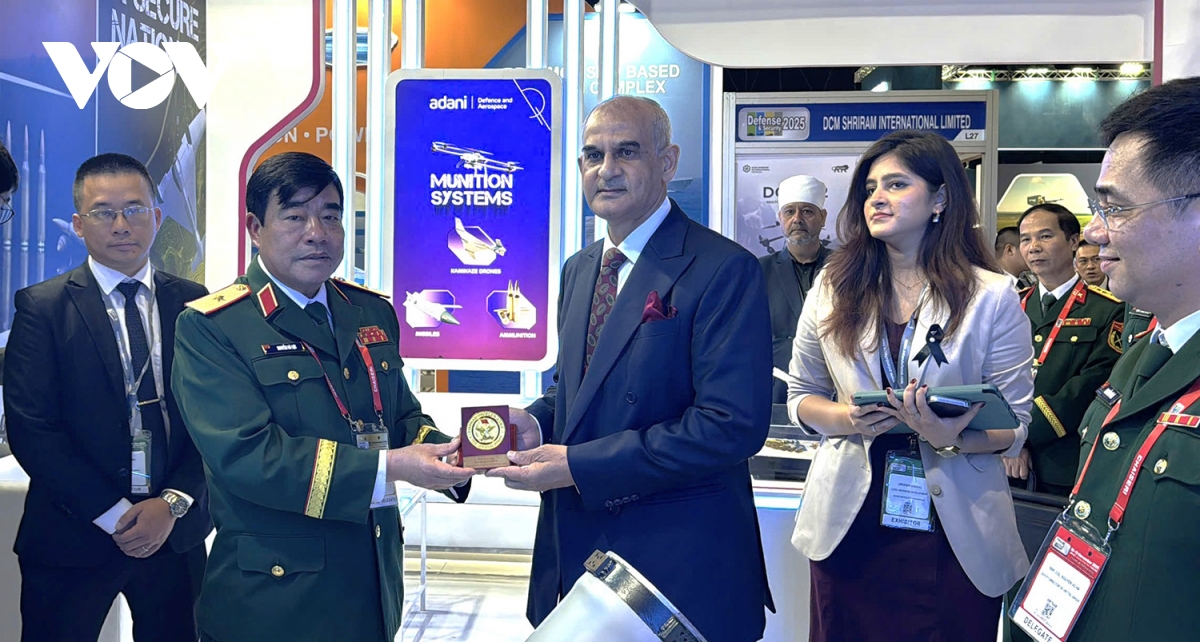 Trung tướng Ngô Bá Lực, Phó Tổng Tham mưu trưởng Quân đội Nhân dân Việt Nam tham quan gian triển lãm của Ordefence, đơn vị thuộc Tập đoàn tư nhân hàng đầu Ấn Độ - Adani