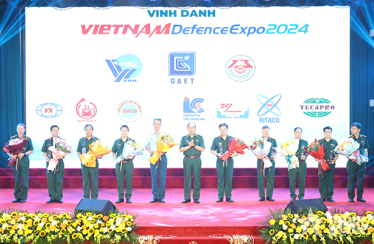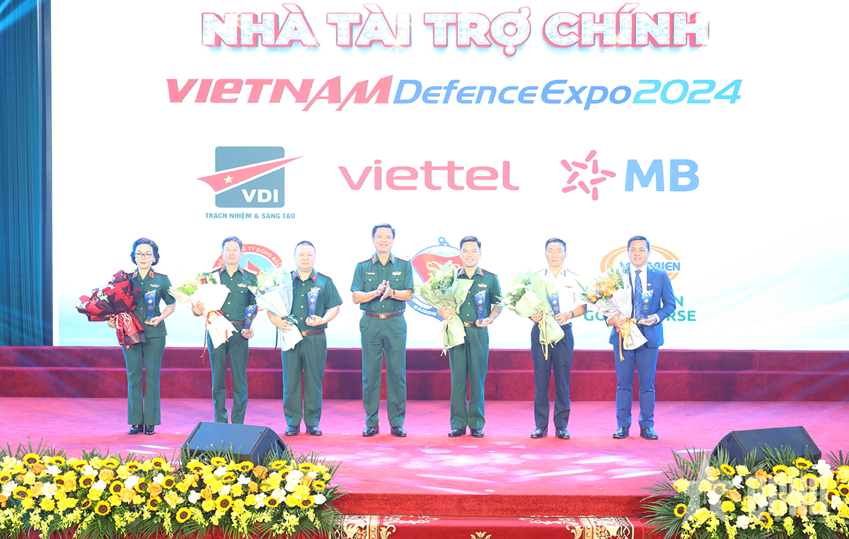 Trong khuôn khổ chương trình hội nghị, các đồng chí lãnh đạo Bộ Quốc phòng đã trao hoa và biểu trưng ghi nhận những đóng góp của các doanh nghiệp đã tài trợ cho Triển lãm Quốc phòng quốc tế Việt Nam 2024.