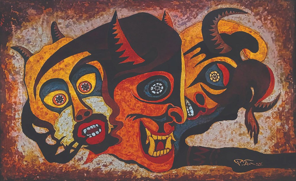 Trong không gian triển lãm, mặt nạ được tách khỏi bối cảnh nghi lễ quen thuộc để bước vào hội họa như một hình tượng độc lập. Những cảm giác dữ dội thường thấy trong tượng gỗ dân gian được chuyển thành các mảng hình cô đọng, có tiết tấu. Nhờ đó, các biểu tượng không bị giới hạn trong cách đọc dân tộc học, mà có thêm khả năng đối thoại với mỹ thuật đương đại.